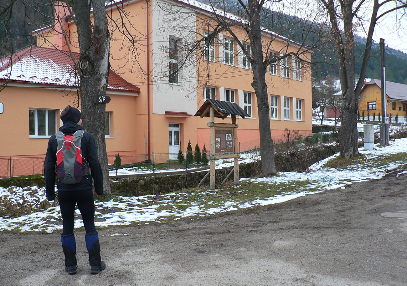 Takže sme sa striedali dvaja, celkom to išlo, našťastie bol ten sneh ešte suchý, čo už o pár dní prestalo platiť. Bola by to iná sranda v mokrom alebo v kôrke, ktorej sme mali celkom dosť aj na tých pár posledných metroch pod krížom. A pritom aký kontrast – dole v dedine suché cesty, na chodníku na Podšíp ledva trochu mokrého snehu a stopa pekne prechodená. Predčasne sme sa ale cestou tešili na stopu až hore, končila akoby uťal - pri dreveniciach. Tam inak končí aj zelená značka zo Stankovian, už pár rokov oficiálne značená. Aj cykloznačky sú tu stále, len stále nikde nevisí upozornenie, že je to cyklotrasa len jednosmerná a pre zjazdárov :-)