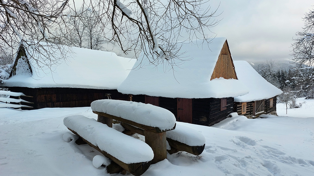 Takže Podšíp: v pravej zimnej atmosfére s kopami snehu mala známa dreveničkárska osada neskutočnú atmosféru, ako z reklamy na pravé slovenské vianoce :-) Len o kúsok nižšie nám to pod nohami čvachtalo a sneh sa striedal s blatom, medzi chalúpkami sme už ale našli ozajstnú zimnú rozprávku. Nikde nikto a to ticho! Už len tie výhľady na Krivánsku Fatru chýbali.