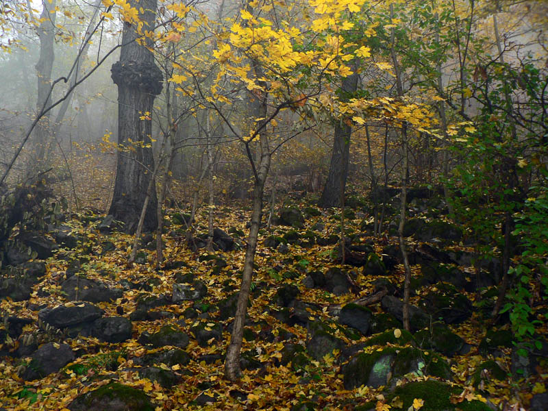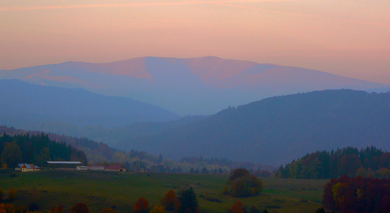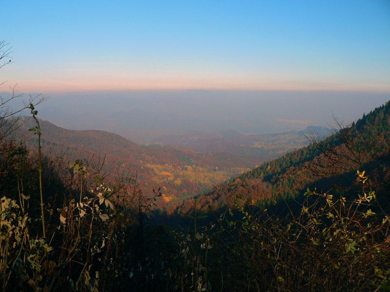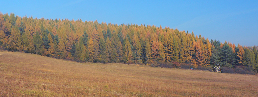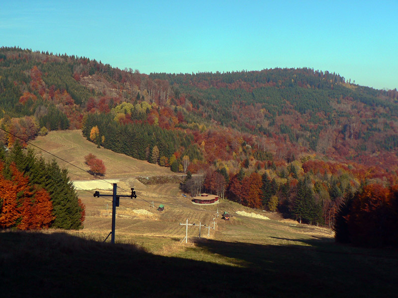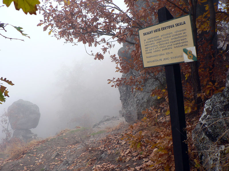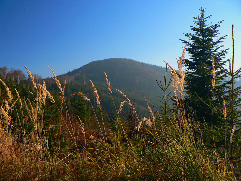 Južná časť Kremnických vrchov je poriadne zalesnená a takmer bez výhľadov. Preto je možno dosť nezáživné motať sa tadeto počas „obyčajných“ a nedajbože ešte zamračených dní. Našťastie je tu babie leto, tento rok takmer nekonečné. Koniec októbra, najprv ranné hmly, neskôr modré nebo, krikľavé farby opadávajúceho lístia - to hneď aj chôdza po lesnej asfaltke naberá iný rozmer.