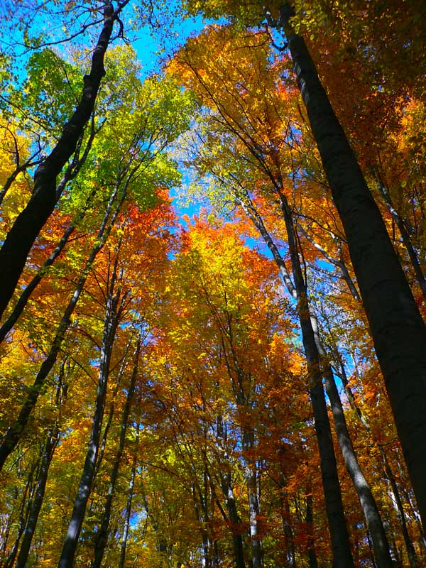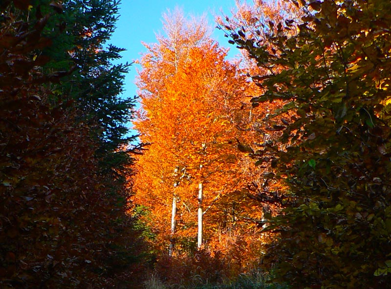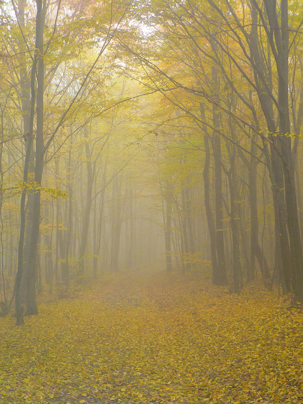 Nebudem sa tu veľmi rozplývať nad gýčovitou krásou jesenných lesov, akurát ma celú cestu napadali rôzne názvy pre tento článok (jeden hlúpejší ako druhý), ako „Cesta rozprávkovým lesom“ či „Farebné lesné tunely“ a podobné. A spomeniem aj to, že prvých ľudí som stretol (napriek ukážkovému počasiu) až na Troch krížoch. Motorkárov nerátam, to je škodná, nie ľudia :-) A ešte to, že skoro celé sa to dá prejsť aj na bajku, asi len okrem oboch rezervácií, kde by bolo viac tlačenia ako jazdenia. Ale tie sa dajú obísť po cestách. Táto prechádzka je stále v miernom stúpaní. Len občas sa do cesty postaví niečo prudšie, ale vždy krátke, len „na rozdýchanie“. A ešte spomeniem hádam to, že krásne paroháče cez cestu skákali. Krásne ale „sprostie“ - keby sa nepohli, človek by ich v tom lese nezbadal :-) Ostatné povedia fotky, ale treba tam radšej ísť a vidieť na vlastné oči.