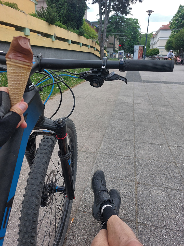 Ale cesta prevažne z kopca, vzduch číry, slnko za chrbtom, vietor do chrbta, tak užívačka až do Teplíc a ešte bolo hafo času na fajnú zmrzku „premium“. Tak nakoniec celkom fajn to vyšlo, nabudúce to hádam dokončím. A bola to dobrá sobotná rozcvička pred žiletkárskou nedeľou :-)