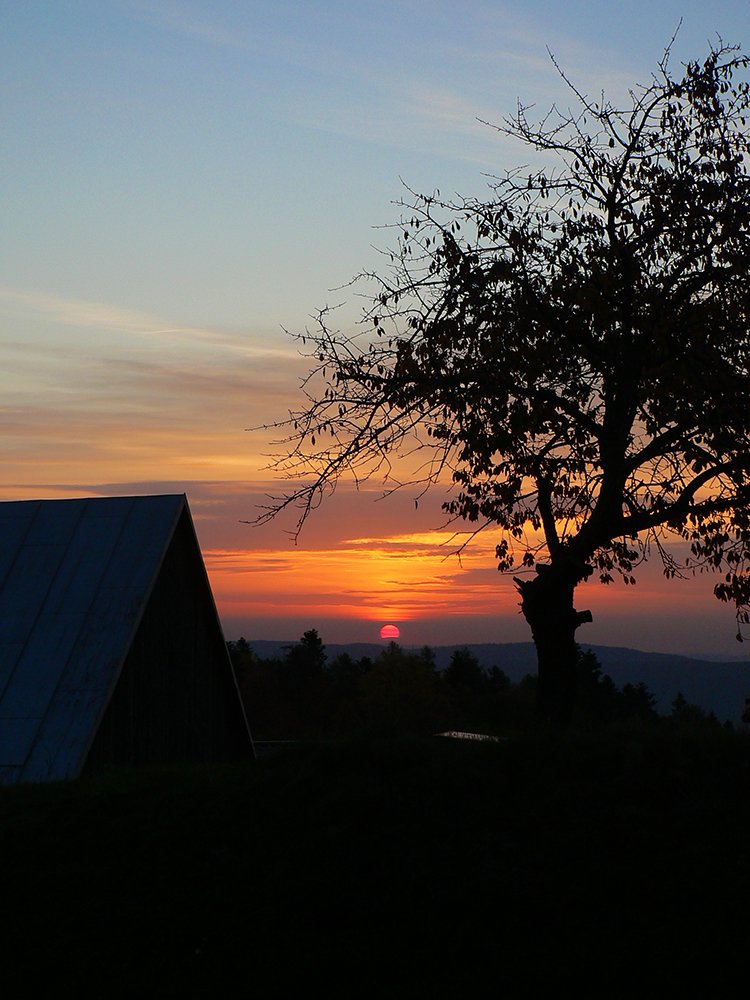 A teda počasie vyšlo! Nie síce úplne úplne gýčovito, kalendárovo, ale ráno bolo krásne, takže farby sa ukázali, aj červené slnko na Hornej Rovni. Postupne sa potom síce zaťahovalo a popoludní aj zapršalo, ale len tak na osvieženie, a to zase pridalo do krajiny trochu tej jesennej melanchólie, a zase iný druh krajinárskych vizuálnych pôžitkov.