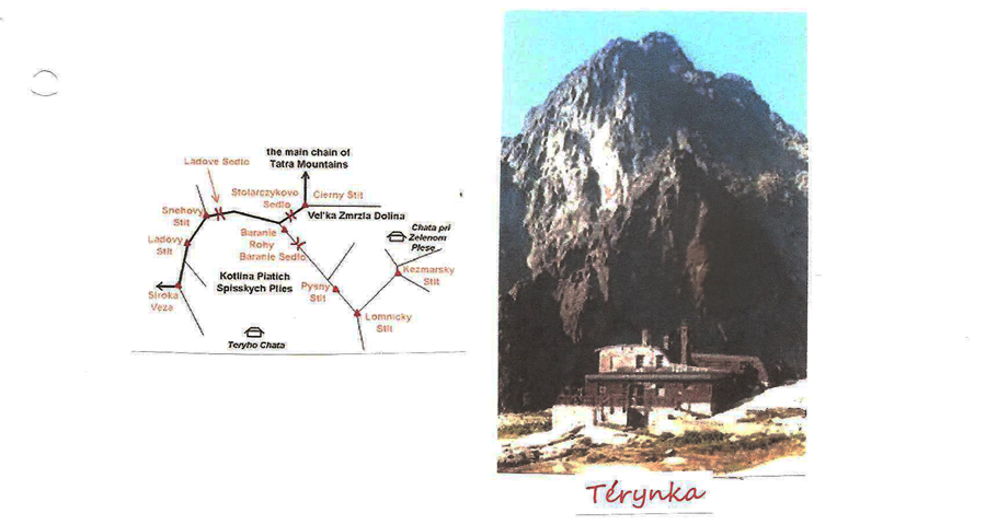 Obligátna príprava: jazda na motorke k Bíličke a mám pred sebou samotársky výstup na Térynku, lebo Vlado podľa Cagašíkovho príkladu hore bežal. Trvalo to dlhšie, tak mi išiel serpentínami, dole Hangom, naproti. Sedel som asi v druhej zátačke, lebo ma chytil hlad a mal som od Šaňa Telgarského (lyžiar) čerstvo zaúdenú prerastanú slaninu. Tam ma objavil a zjedli sme ju tam celú. Pokukali sme Žltú stenu a sme na chate.