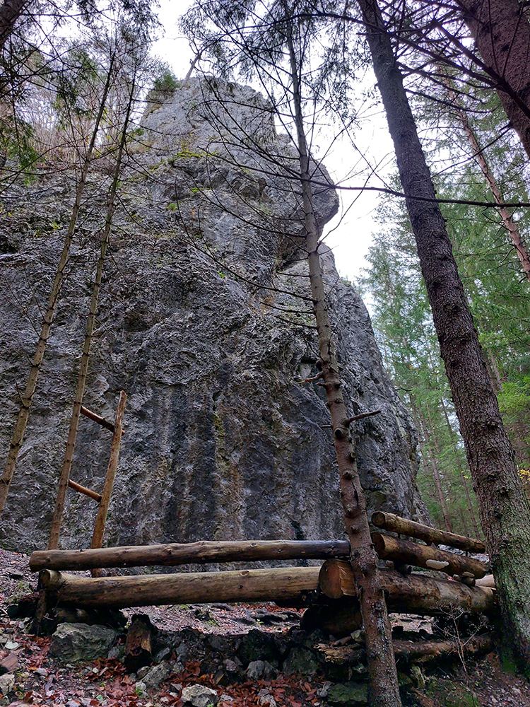 My sme ešte ako bonus obzreli aj lezecké steny pod Kaškovou vežou – pekné, suché vápencové skalky, otočené na juh. Inak jedna z tunajších ciest má meno Vetroplach (5+). Celý sektor je ukrytý v lese nad pravým brehom potoka, v dolnej časti doliny – na chodník k nemu vedú dva mostíky cez potok. Pred mostíkmi stoja teraz aj tabule, odkazujúce na natáčanie filmov o SNP a o Jánošíkovi v týchto miestach. Nedá sa nevšimnúť si ich.