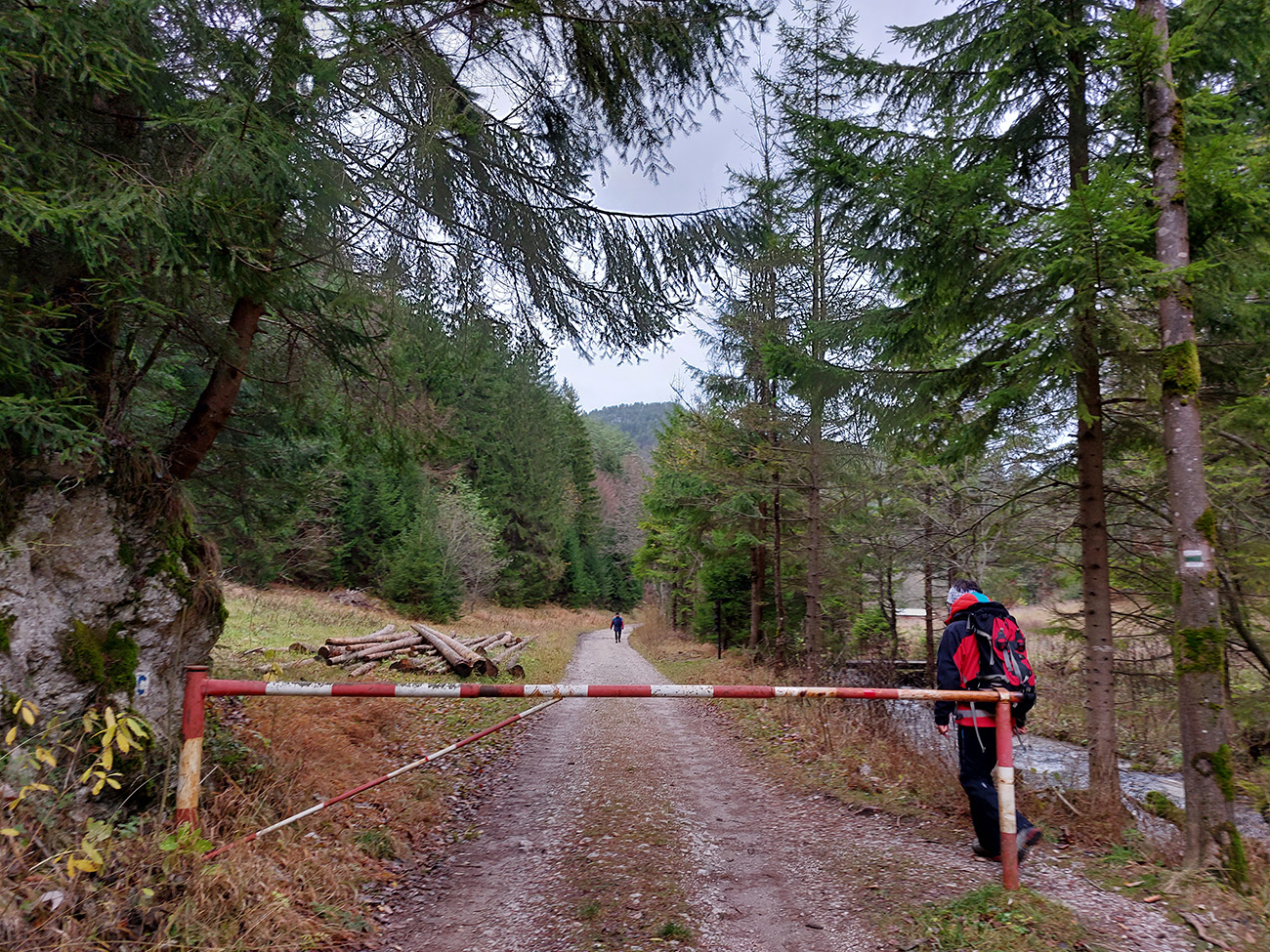 Spevnená šotolinová cesta vedie zhruba šesť kilometrov od ústia po smerovník „Spoj Rakytovských dolín“, takže pod nohy netreba veľmi pozerať. Dolinou sa plazí v pohodovom, miernom sklone aj zelená značka a cyklotrasa. Zelená pokračuje ďalej cez Smrekov na Kráľovu studňu, cyklotrasa pri smerovníku končí. To ale nie sú jediné možnosti. Od smerovníka sa dá ešte „vybehnúť“ po žltej značke pod Drienok, podobná žltá vedie z nižšieho bodu doliny do opačného svahu (ale rovnako strmého) pod Ostrú. Na mapách sú tie žlté také krátke spojky, v realite poriadne výživné strminy. Ale najmä tú nižšiu odbočku sa oplatí pozrieť, aspoň po skalný prah v jej prvej tretine, lebo cestou k nemu sú v lese, aj priamo popri chodníku, porozhadzované parádne skaly až bralá. A tam dole nie je sklon veľký (to ani na druhej žltej odbočke).