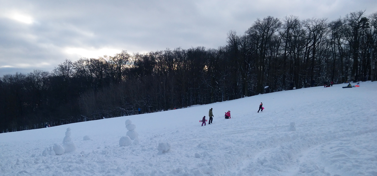 Pokračujem nazad k parkovisku, už to začína... Ešte prebehnem k sánkarskej lúčke na kontrolu. Prví ranostaji už fičia dolu svahom, aj dve deti s lyžami už skúšajú hrany na zľadovatelom podklade. Krajina snehuliakov ma upokojí... Ešte to ľudia vedia stavať, hádam aj dôvody na to našli u detí. Všetko ako má byť, podľa starého pravidla... Kto sa bojí, nech ostane doma. Odvážnym šťastie praje. Na pár dní to bude biele... Len škoda, že to deti nestihli počas prázdnin. Akosi meškal sneh...
