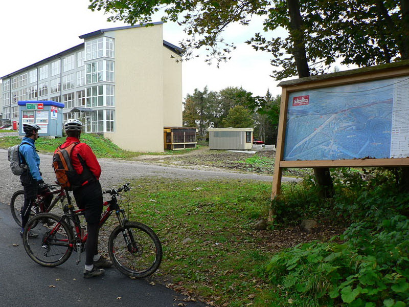 Za mnou, s geografom sa nestratíte, hovorím a radím chalanom prečítať si na Vetroplachmagazíne tretí diel seriálu „Od Vepra k Vepru“ :-) Smer máme dobrý, no toto sú typické slovenské cyklotrasy – just keď treba, značky niet. Ale intuícia našťastie neklame a o chvíľu sa na „Václaváku“ napájame na lyžiarsku trasu. Akurát tu ju nedávno „zušľachtili“ lesáci traktormi, našťastie nie na dlhom úseku. Po pár stovkách metroch už skúšame, či aj dvojmetrový bajker prejde Görgeiho tunelom. Na Skalku je to po Zlatej ceste na skok, keďže dvojtretinovou väčšinou som bol prehlasovaný a „skratka“ dolu od tunela a cez Bystrické sedlo nazad na Skalku mi neprešla. Vidina sauny akosi zrýchľuje nohy, ale vidina zjazdu na Krahule po saunovaní sa nezdá až taká lákavá. Mraky sa trhajú, tak len posedíme na teplom dreve pred zavretou chatou, pojeme žemle a keksy a valíme po červenej dolu.