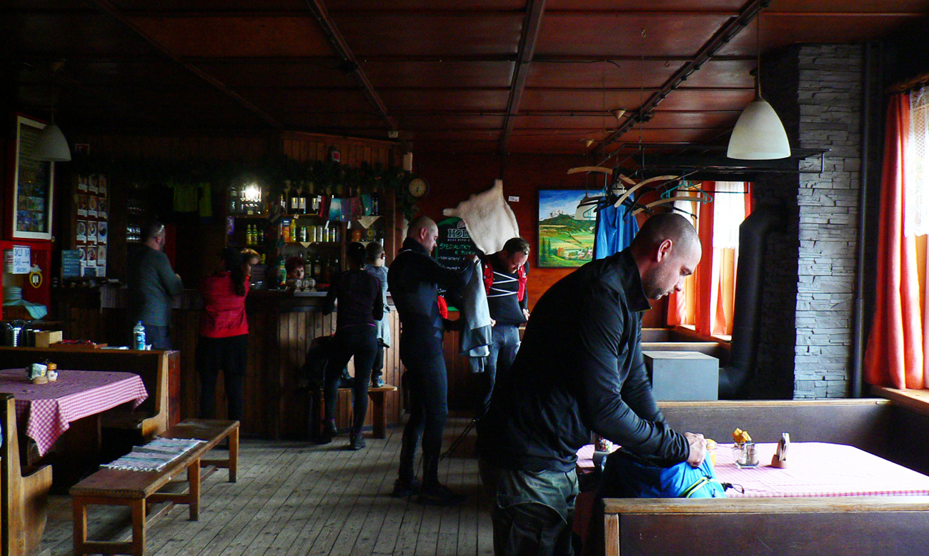Chata má elektrinu len z agregátu a trošku aj zo slnka, vodu zo slabého prameňa. Takže komfort horského hotela netreba čakať, treba byť trpezlivý a ohľaduplný. Ale jedálniček sa zdá byť bohatý a čapujú okrem chmeľových jonťákov aj originál Kofolu, tak hádam by malo byť všetko ok...
