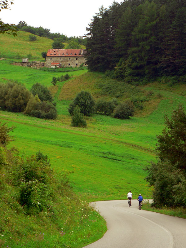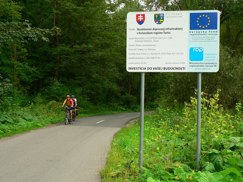 Jedna pekná a hlavne málo frekventovaná cesta vedie východným okrajom Turčianskej kotliny, podhorím Veľkej Fatry. Dostala meno podľa svojej dôležitosti pri zásobovaní partizánov, aj keď už v stredoveku tadiaľto vozili meď z Bystrice do Krakova. Na juhovýchode kotliny sa odpája od hlavnej cesty Banská Bystrica – Martin pod Šturcom (pri ústí Žarnovickej doliny), na severe sa napája na hlavnú cestu z Martina do Ružomberka pri Ratkove. Takto má asi 52km a pretože hlavná cesta vedie stredom kotliny, je to tichá, ale preparádna asfaltka. To aby tu bolo čosi aj pre tých, ktorí radšej tenšie kolesá – navyše v jej severnej časti medzi Sklabinským Podzámkom a Krpeľanmi pribudli nedávno kilometre nového asfaltu, takže tam je hladká ako detská prdelka, hoci zároveň aj najužšia. Hlavne cez víkendy sa to na nej cyklistami len tak hemží - najviac okolo Turčianskej Štiavničky a Gaderskej doliny. Cesta je podstatnou časťou červenej „turčianskej cyklomagistrály“ (55km), ktorej profil je v galérii – aj s odbočkami do obľúbených veľkofatranských dolín. Tie sú ale svojim povrchom vyhradené minimálne pre krosové bicykle. Pre „žiletkárov“ je od vlani čerešničkou na torte nový čierny koberec na najsevernejšej odbočke z tejto cesty - z Nolčova do Veľkej doliny. Je to asi 6-kilometrový výživný kopček v tieni úzkej a strmej doliny, popri potoku, ideálny na tréning kopcov v sparnom lete. Len či po lesákoch už nie je na ceste viac hliny ako asfaltu?