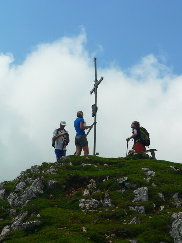 Kto by ďalej čakal už len laná a skoby, bol by sklamaný – nasleduje spomínané „golfové ihrisko“ na širokom vrcholovom chrbte. Tu je už chodník pohodový, na vrchole nechýba kríž a vrcholová kniha, v peknom počasí poteší 360-stupňový výhľad. Cesta ta aj nazad k autu nám trvala slabých 6 hodín, a to sme po zaberačke z predchádzajúceho dňa liezli z kroka na krok a výdatne odpočívali. Časy na smerovníkoch sú tu dosť nadsadené, isto nerátajú s diabolskou výkonnosťou slovenských ceprov :-)
