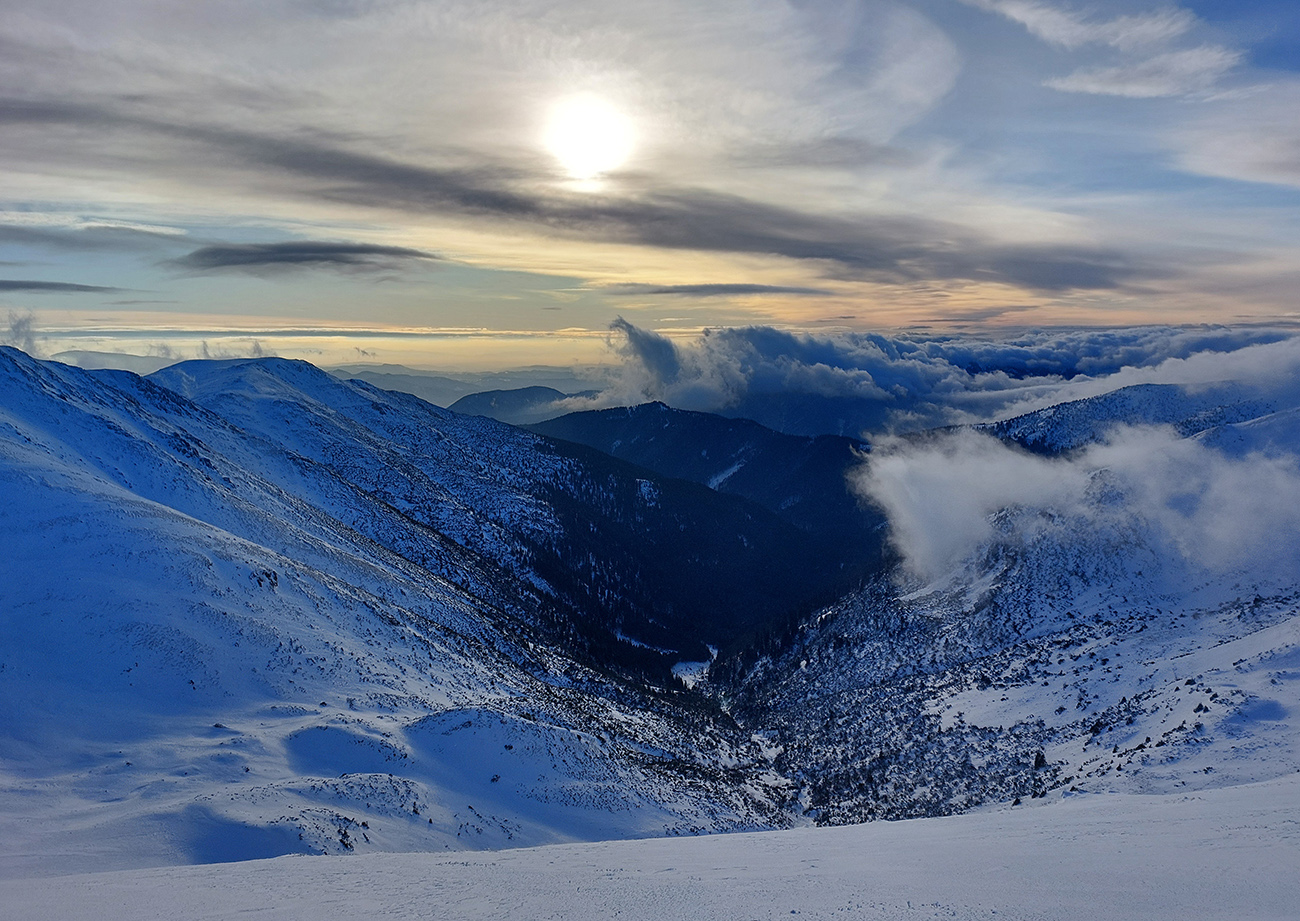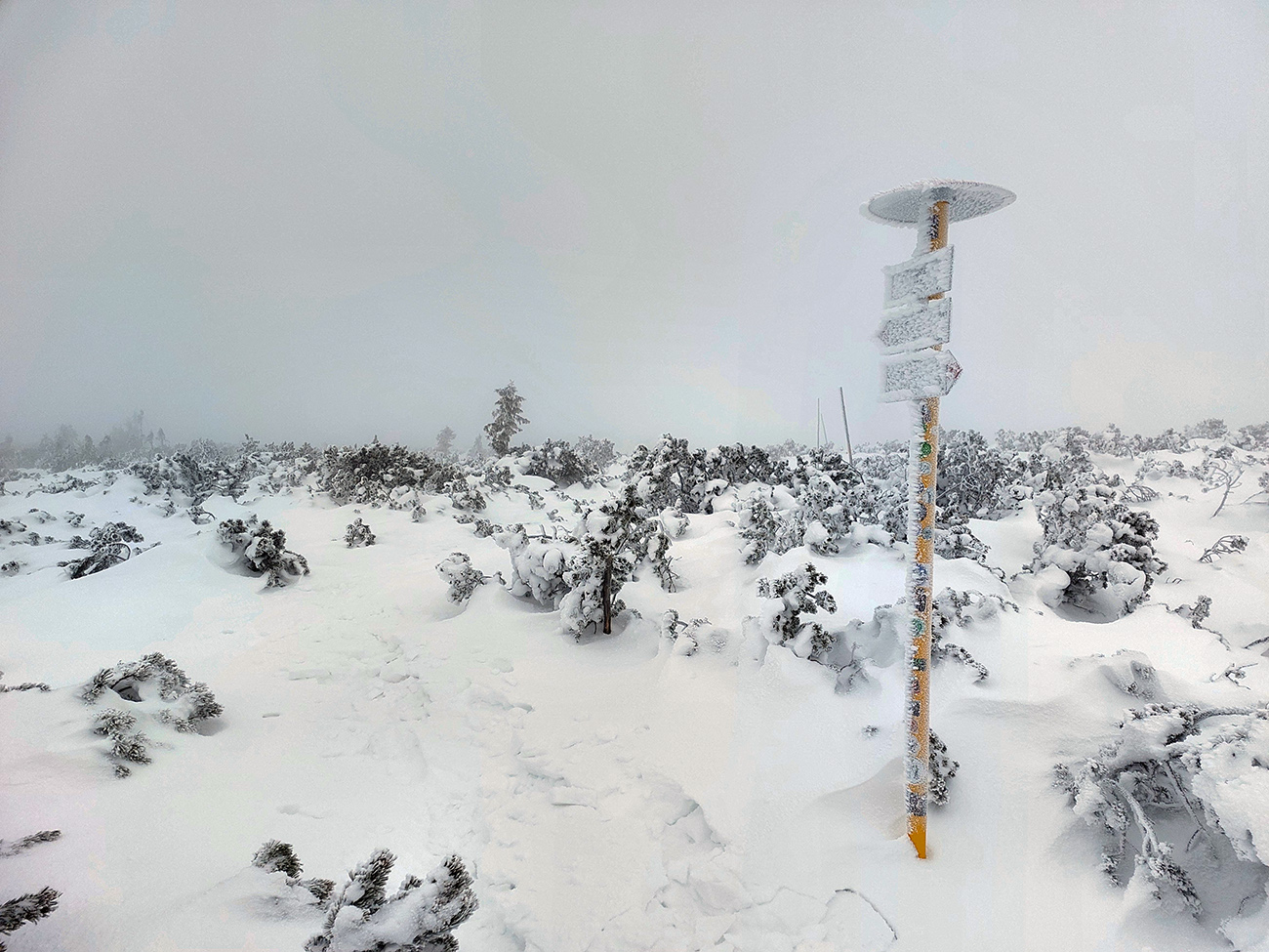 ...lebo niečo podobné som asi naposledy zažil na konci nonstop prechodu hrebeňa ( TU ) vo víchrici a s poriadne rozmočenými nohami. Pritom na sobotu 10.1. bola predpoveď relatívne dobrá – mrazy aj vietor mali dočasne povoliť, aj mraky sa mali postupne rozpúšťať. No máš vidieť! Všade pekne, len just na nízkotatranskom hrebeni mlieko plnotučné. To by ale až tak nevadilo. Najmä som si veeeeľmi naivne myslel, že po ostatnom snežení sa na hrebeň niečo ulepí. Máš ho vidieť po druhý raz! Pod pásmi buď ľadová rašpľa, alebo tráva, alebo kamene, alebo ak nebodaj sneh, tak hnusný prepadák bez základu, zato s kôrou navrchu. A na konci, kde sa konečne dalo polyžovať, som v hnusnej, predvečenej difúzke prd videl. Proste ideál :-) Tak keď už som sa tam tak bezprizorne motal a vrátiť sa mi nechcelo, povedal som si, že aj takô musí byť a ide sa trénovať tá odolnosť. Ešte, že som nebol až taký úplne naivný a vzal som kameňáky a najhoršie pásy (prežili). Trasa inak klasika, ktorú pozná každý, dokopy 40 km a 2500 výškových, ale za 8,5 hodiny, to hovorí asi za všetko: