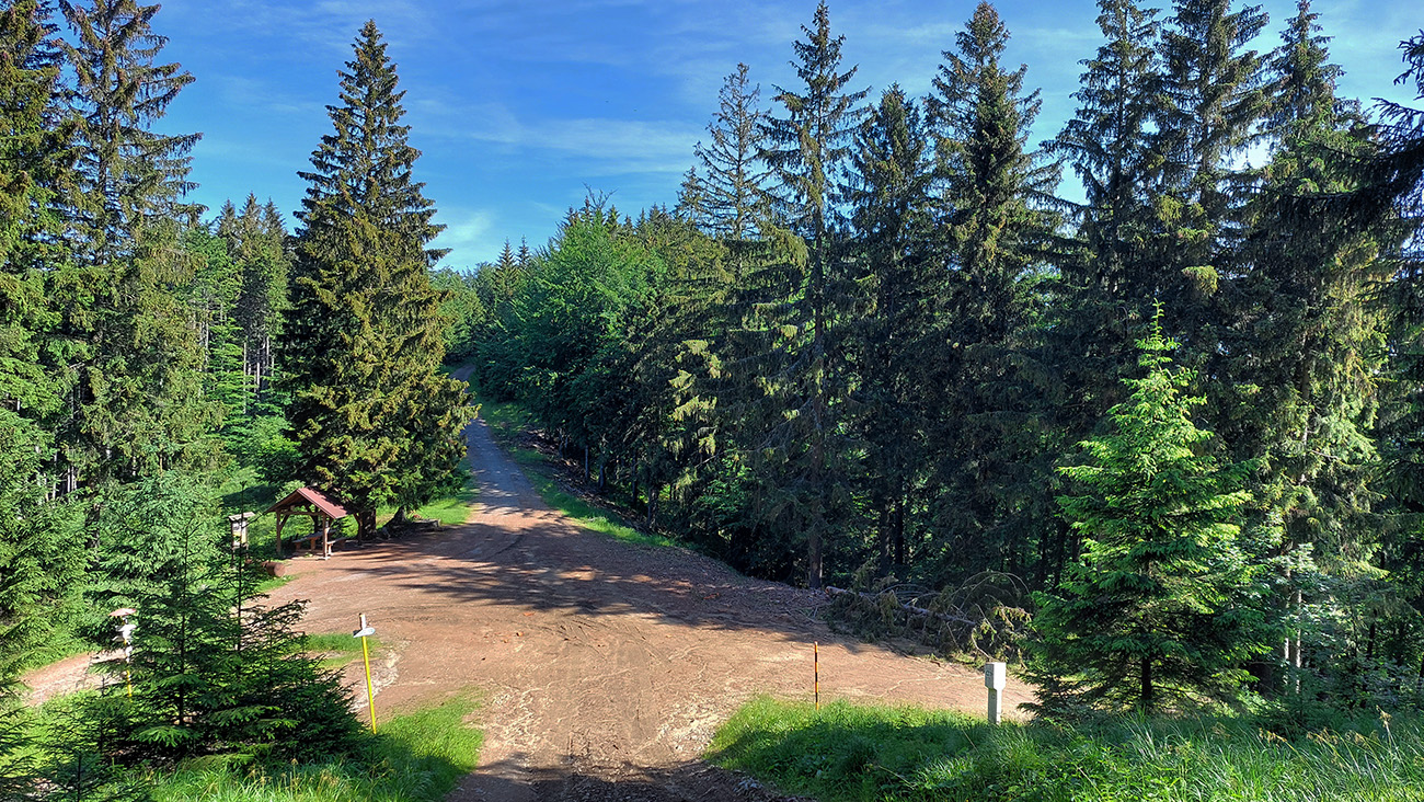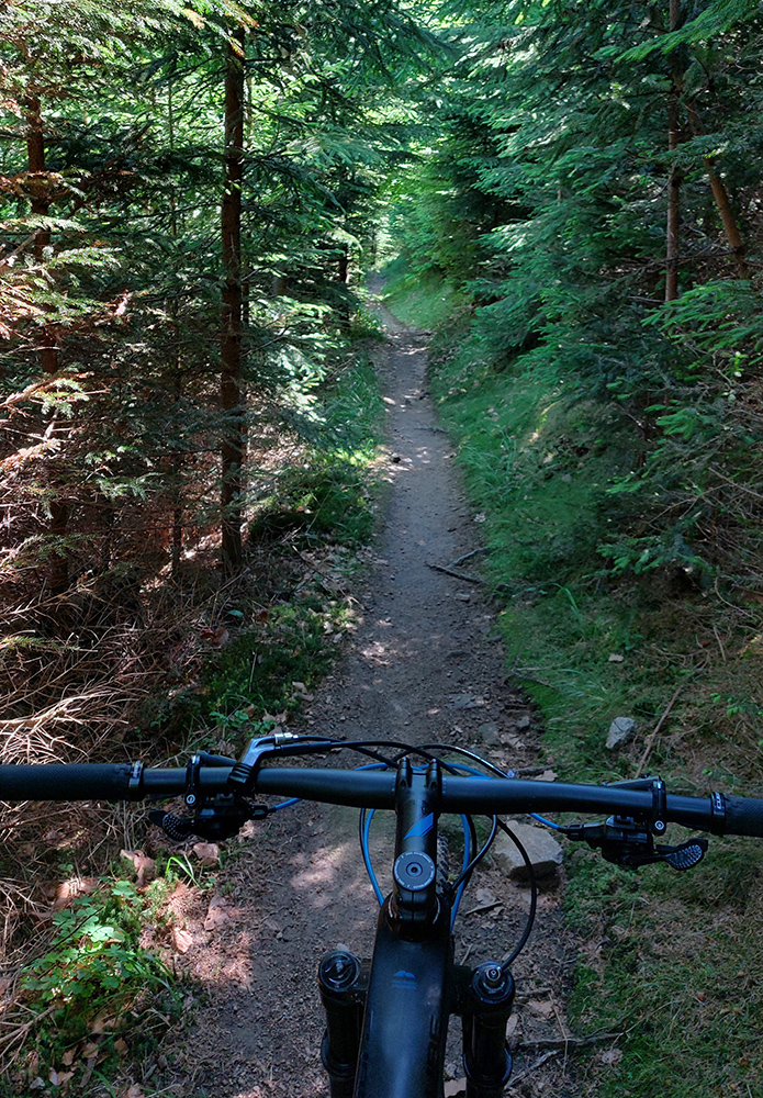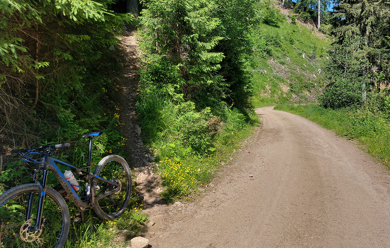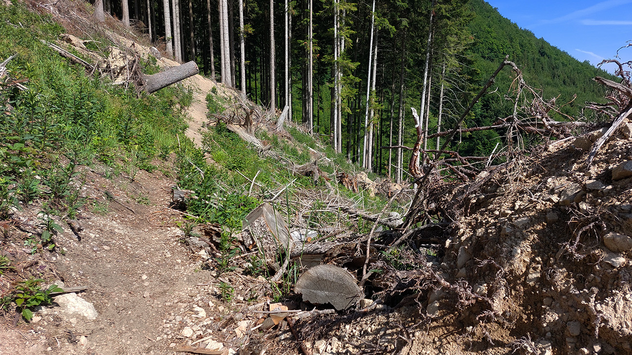 Potom v lese naopak krásny chodníček, aj na rúbaniskách s menším sklonom, kde je širší. Aj keď samozrejme oči v pozore držať treba, korene a kamene a schodíky rôznej výšky striehnu. Záver je momentálne síce trochu poznačený vývratmi a eróziou svahu, ale to len tesne pred výjazdom z trailu do sedielka pod Hoblíkom. Odtiaľ je na mape Vretenica značená priamo do doliny po zvážnici, ale bol by som blbý spustiť sa tade, keď paralelne vedie krásny singlík, navyše spestrený niekoľkými serpentínkami. Na ich spodku sa pripája Anakonda, tak som sa tešil, že si to dám dvakrát, lebo ten záver je fakt pekný úsek: