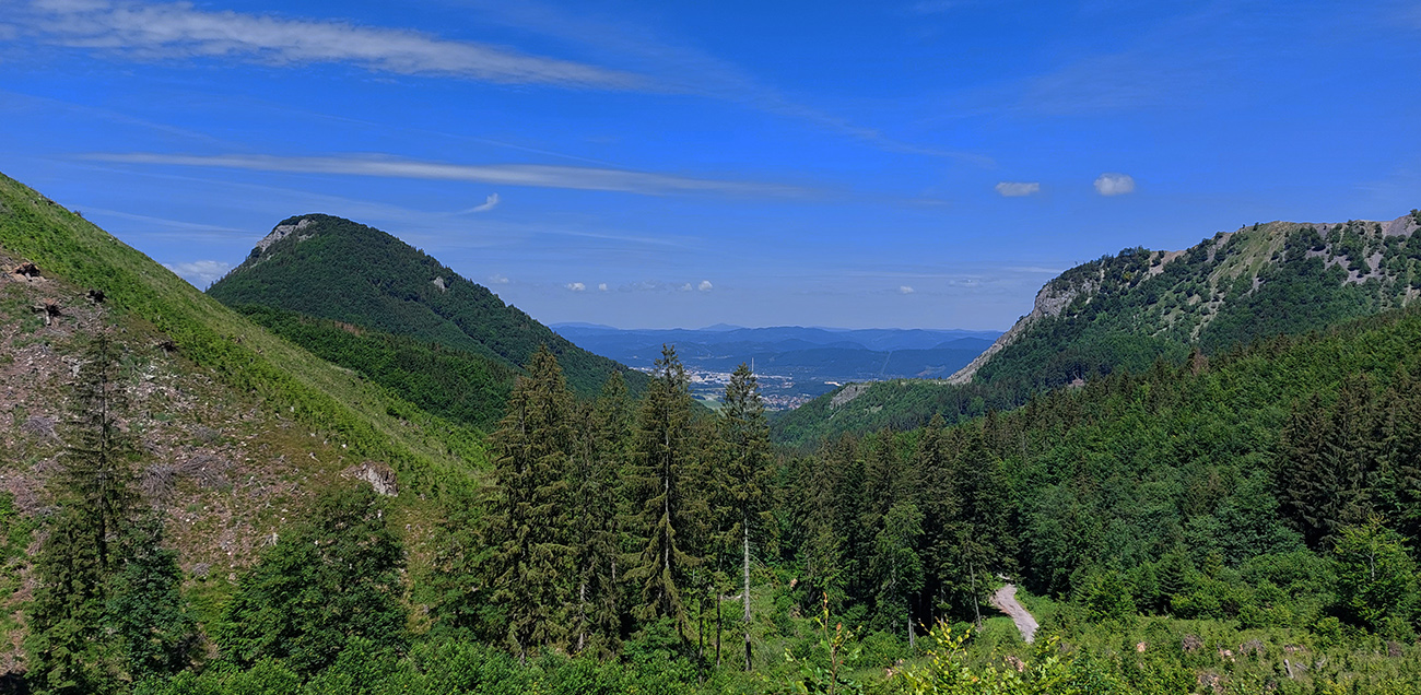 Potom už nastal čas na odchod, takže som sa len popod spodné bralá Hoblíka (ďalší pekný chodník) a ponad Višňové presunul do susednej Stráňavskej doliny. Tá dole ústi pekným kaňonom. Nad ním síce trochu blata, ale nevadilo, umyl som kolesá brodením a čakal ma dlhý výjazd nazad na Saračníky. Po chvíli stúpania už som sa zdola pozeral na megarúbanisko so začiatkom Vretenice.