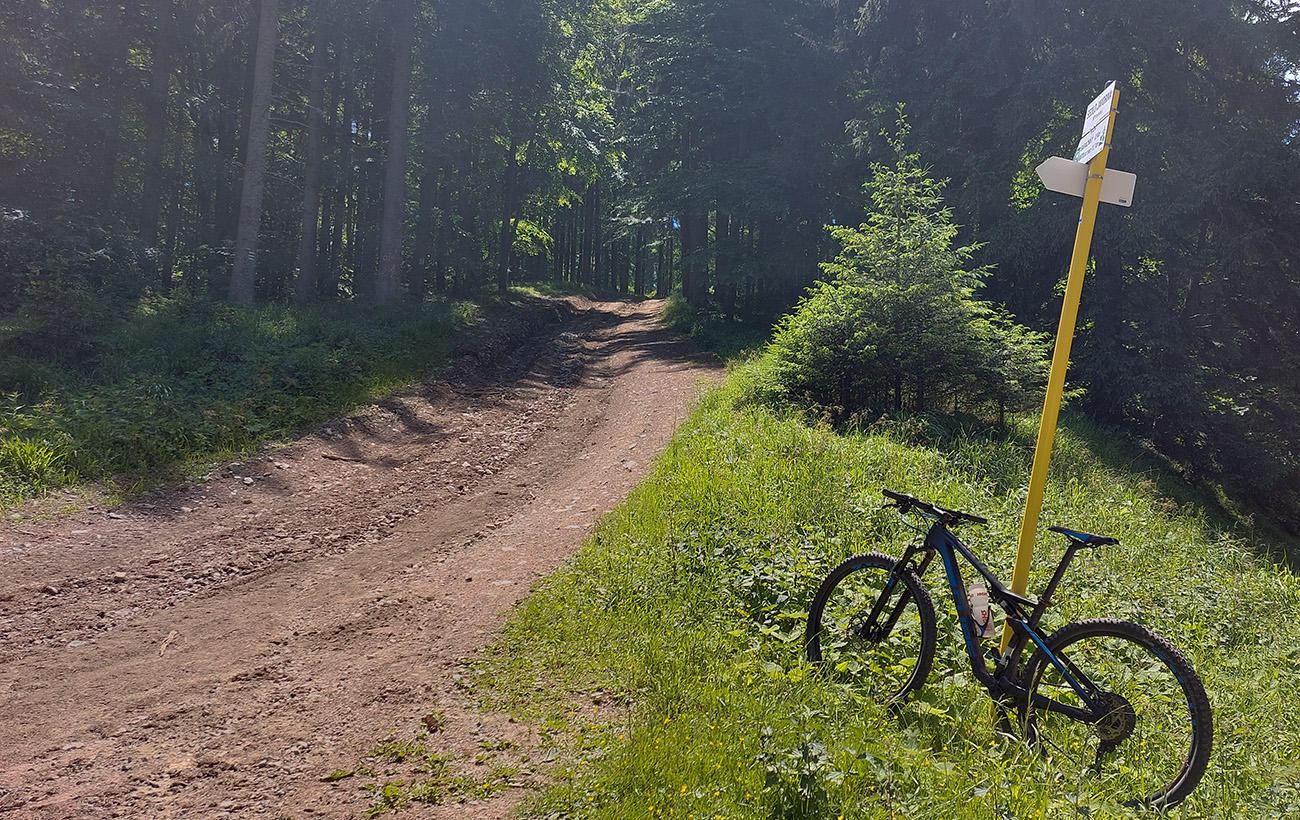 Takže na úvod lúky nad Martinom – Záturčím a viac ako 10 km stúpania po zelenej cyklotrase na Saračníky. Dobrá rozcvička. V okolí cesty sa aktuálne na viacerých miestach ťaží, ale povrch použiteľný, nie moc rozhasený, len niekde mokrý, ako voda tečie. Potom krátky zjazdík do sedla Javorina, za smerovníkom v sedle prudko doľava na „asfaltku“ a hľadanie toho správneho miesta, teda zákruty, kde ju opustím: