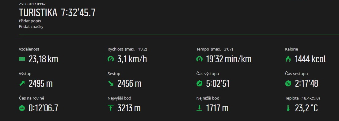 Hodinky ukázali: za 7:30 hod a cca 23 kilometrov som nastúpal 2500 metrov a stál na (ehm...) zopár vrcholoch. No Blues ako sa patrí, aj keď po modrej to bola iba menšia časť.