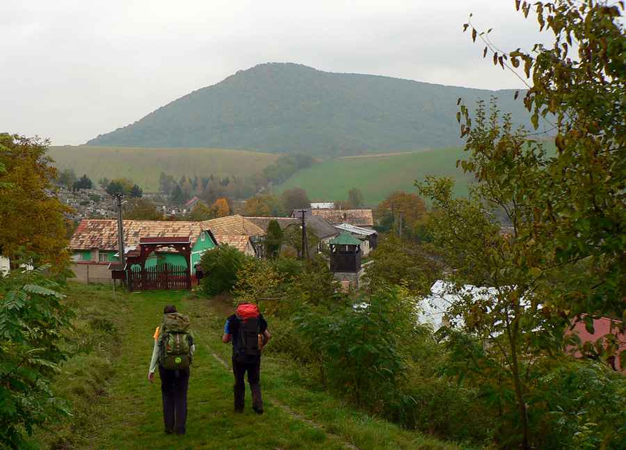 Ešte poskáčeme po hrboľatom hrebienku hore a dolu (stále viac dolu), aj keď sem-tam sa dáka skalka do cesty postaví. Potom už čoraz viac lúk, ich okraj nás „neomylne“ vedie, aj keď značka by sa zišla, zas ju musíme zo dvakrát hľadať. Najmä v lese nad dedinou.