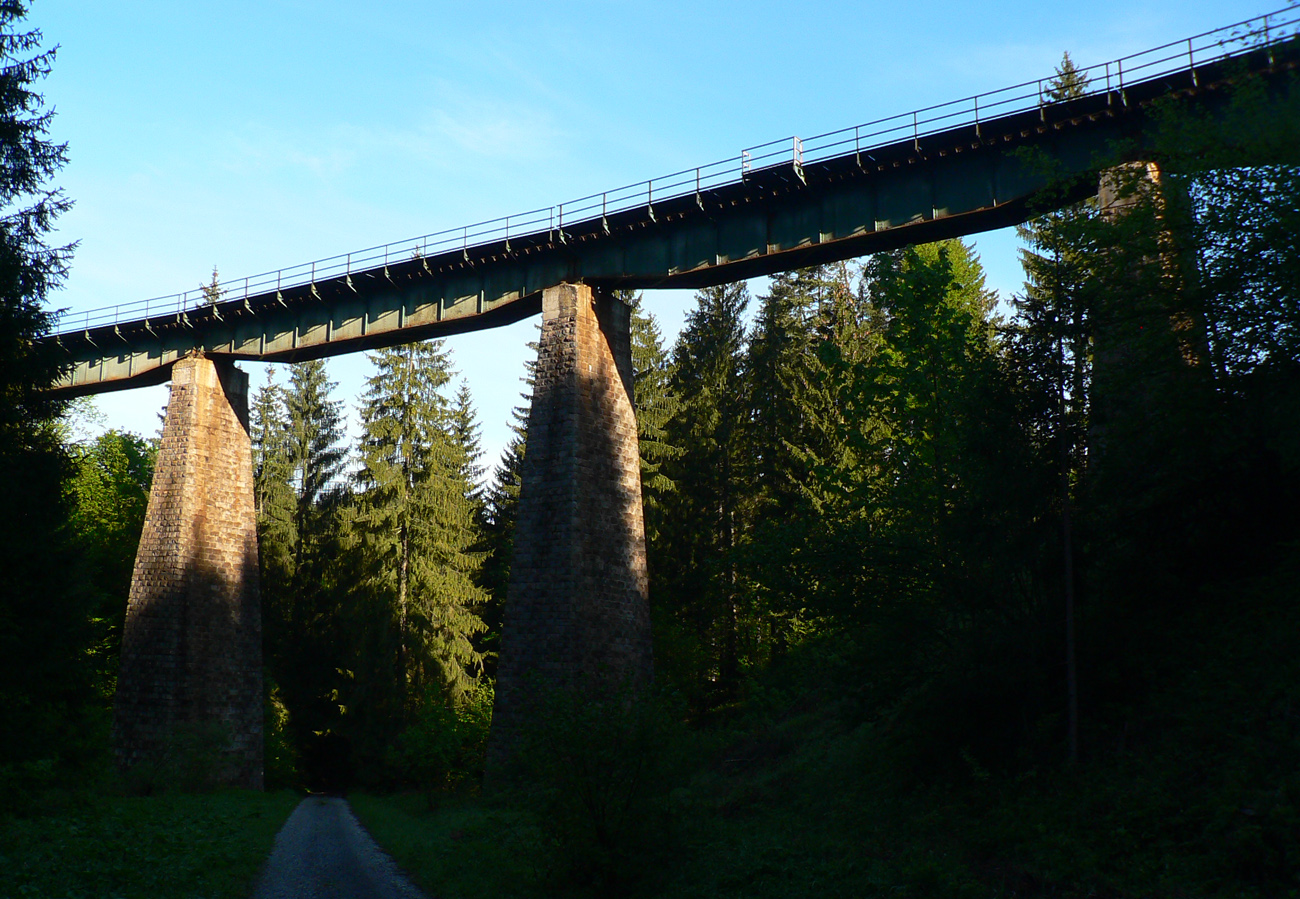 Čierna dolina je taká príjemná, kultivovaná: na úvod železničný viadukt vysoko nad hlavou, potôčik šumí , cesta spevnená, aktuálne sa tu moc neťaží. Krmelce, lúčky. Sklon mierne rastie. Pri smerovníku Ležisko veľký drevosklad, hop cez potok a koniec srandy.