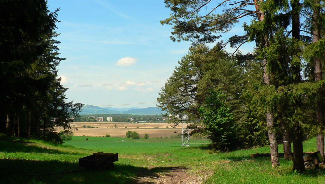 Lenže ako nazad do Teplíc? Zbiehať popri hlavnej sa mi teda vôbec nechcelo (Inak modrá je od Bartošky ďalej už zrušená), tak som sa cez hrebeň preštveral do Žarnovickej doliny. Strmo dole lesom k potoku, potom strmo hore chodníčkom popri lesníckej chatke. Za hrebeňom rúbaň a pod ňou zvážnica, cestu dolinou vidno hlboko dole. Z nej som sa už napojil na žltú značku a cez Čremošnianske lazy, ponad Háj a popri rybníku som sa vrátil na začiatok tej „multifunkčnej greenway“ na okraji lesoparku Bôr. A to je celé, stačilo už len sa dovliecť (vraj) najväčším kúpeľným parkom na Slovensku nazad na stanicu.