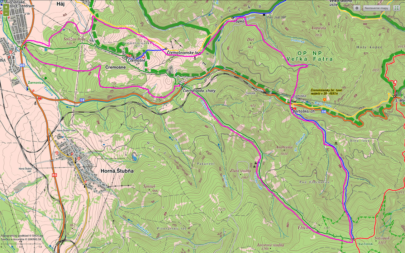 Najvyšší kopec Kremnických vrchov (1316 m) je excentricky vystrčený na ich severný okraj, bez výraznej vyhliadky, lebo je celý pod lesom, takže nič moc? Vôbec nie - kto chce vidieť poriadnu lesnú divočinu, má kam ísť. Aj keď okolo nej zúri lesohospodárska realita. Tri značky vedú hore zo severu, z hlavnej cesty medzi Turčianskymi Teplicami a Banskou Bystricou: červená priamo zo Šturca, modrá od hotela Bartoška (moja zostupovka) a zelená z ústia Čiernej doliny, ktorou som šiel hore. Len ako sa k nim dostať, keď už ani tie vlaky na Čremošnom nestoja? Autom ísť a zokruhovať to po krajnici? No fuj... Dal som si to predsa vlakom, ale z/do Teplíc s tým, že úvod a záver som trochu improvizoval po zvážniciach. Nech si neodvykám od reality...