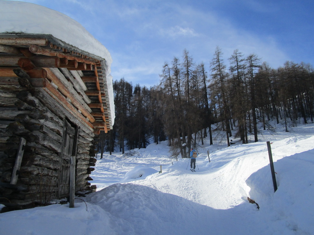 Toto miesto by bolo aj ideálnym cieľom v prípade veľkej snehovej nádielky a následného lavínového nebezpečenstva... Toto ale nie je dnešný prípad. Blížime sa k vrcholu a kocháme sa pestrou členitou krajinou. Zaujímavosťou sú tu staré usadlosti. Kedysi sa tu ludia živili pasením dobytka. Počas krátkeho leta potrebovali pripraviť dostatok sena na dlhú zimu. Zvieratá museli poskytnúť obživu a prebytky vymenili za chýbajúce suroviny.