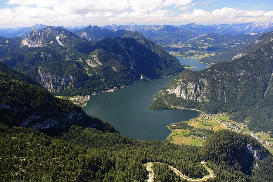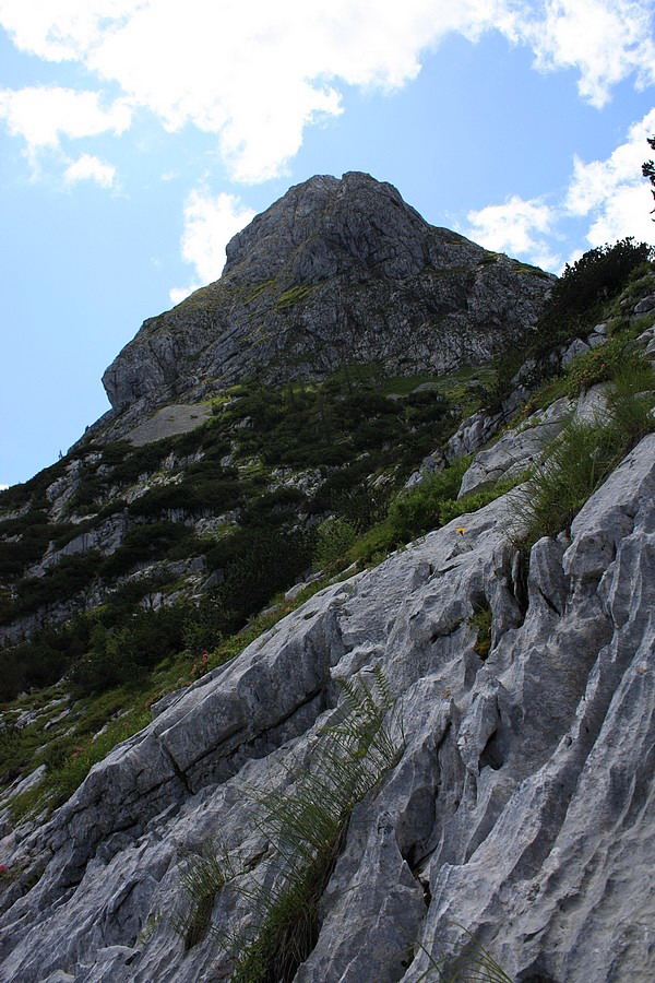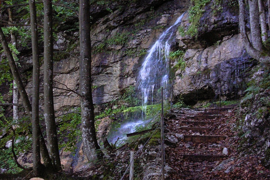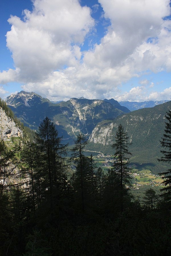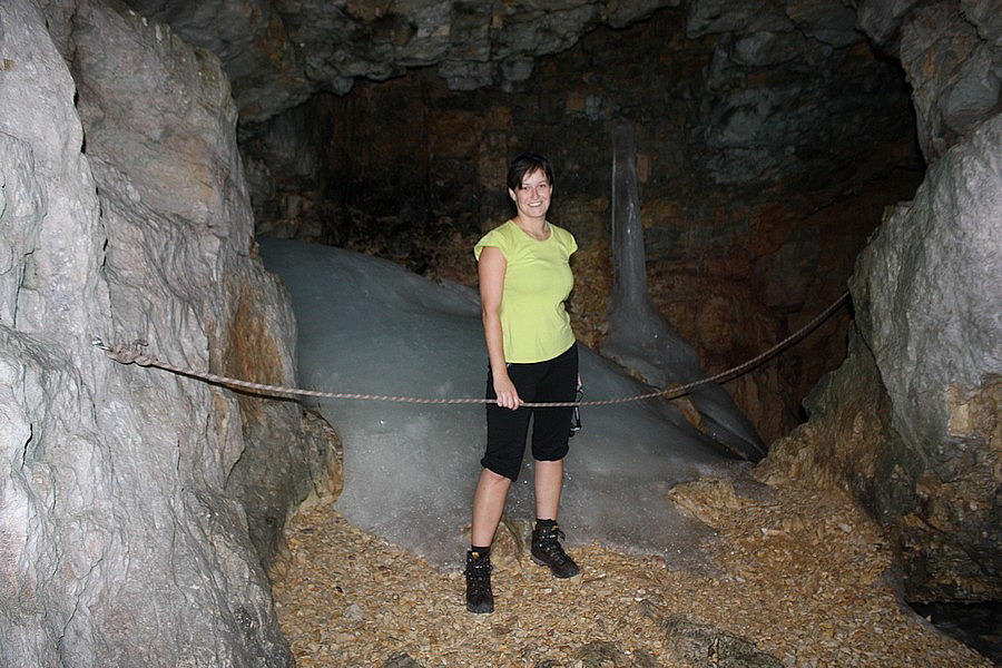 Naše dobývanie Krippensteinu začína aj končí v Obertraune, malebnej dedinke na brehoch Hallstattského jazera. Auto nechávame na parkovisku pri stanici lanovky. Pri pohľade na svahy, ktorými sa máme podľa mapy štverať, začínam pochybovať o niektorých fyzikálnych zákonoch. Chodník štartuje pekne zostra a serpentínami sa škriabe stále vyššie. Vedie väčšinou lesom, len občas spestrí cestu nejaký ten čiastkový výhľad do doliny, krátky tunel v skale alebo vodopád potoka Miesenbach. Asi po dvoch hodinách prichádzame k medzistanici lanovky Schönbergalm. V jej okolí sa nachádzajú dve známe jaskyne, ktoré sa (vraj) oplatí vidieť: Eishöhle a Mammuthöhle.