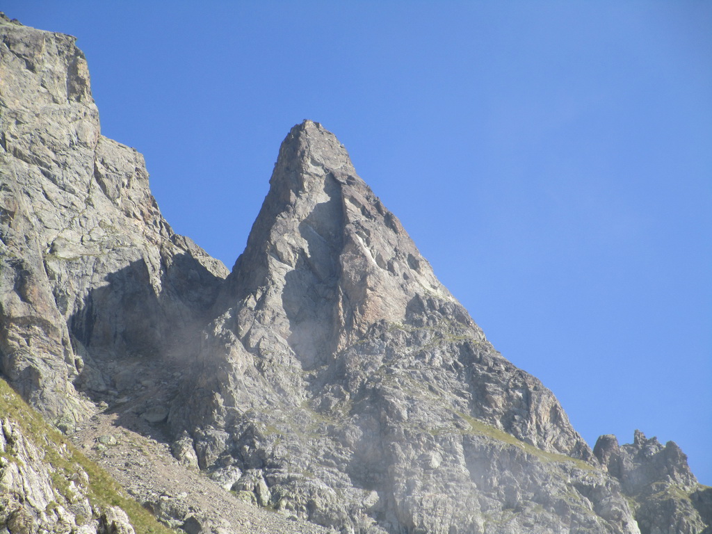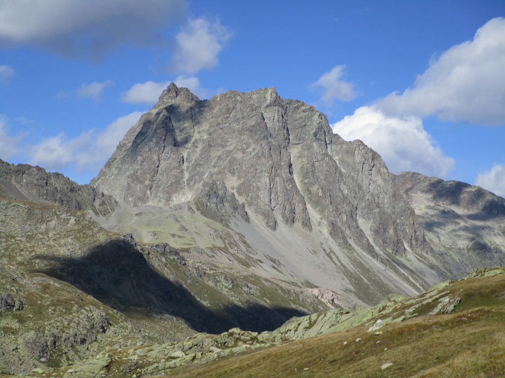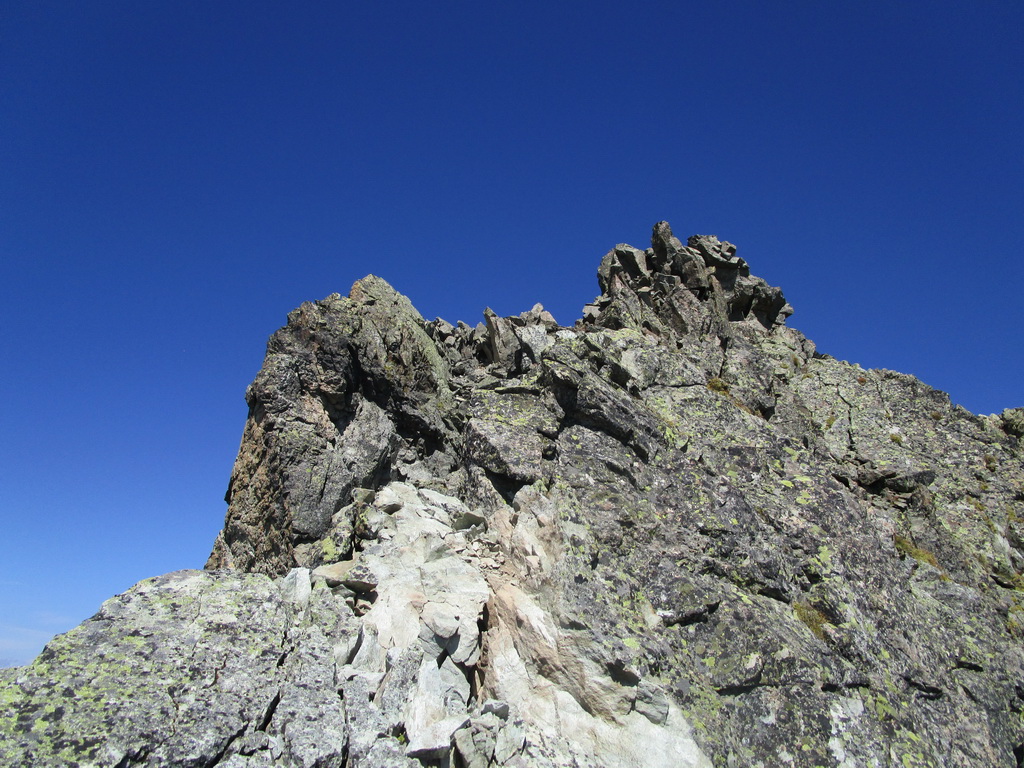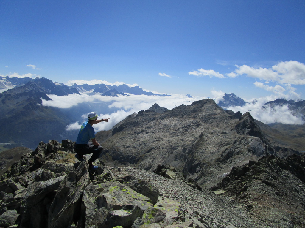 V sedle sa moja púť po značkovaných chodníčkoch na nejaký čas končí. Túto túru som si vyhliadol keď som nedávno stál na Piz da la Margna. Pozrel som sa cez dolinu, zbadal parádny hrebeň a bolo jasné. Vyrážam ku prvej vežičke. O nasledujúcom hrebeni nemám žiadne informácie, o to to bude krajšie.