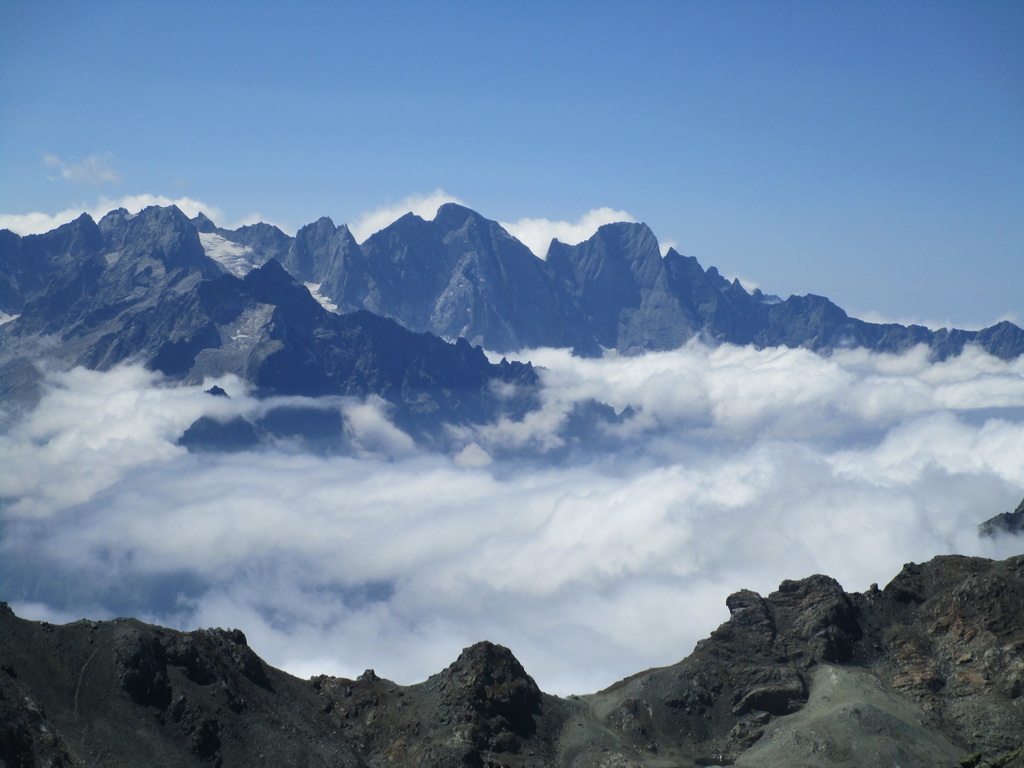 Blížim sa ku JV stene, je to strmé a rozbité, netuším vôbec či to pôjde. Nemám žiadne info. Nevidím ani mužíkov. Vyberám si trasu a postupujem. Vyzerá, že to pôjde. Takéto túry sú pre mňa tým pravým alpinizmom, v rámci mojich možností. Leziem hore pekným exponovaným hrebienkom a zostup si zároveň plánujem vedľajším žlabom. Vtom zbadám kozorožca ako stojí nado mnou a pozoruje ma. Odfotím si už len jeho chrbát ako zdrhá preč. Dobrá správa, takže tam bude ľahší terén. Vyleziem hore a nakuknem do steny z ktorej som počul buchot padajúcich kameňov.
