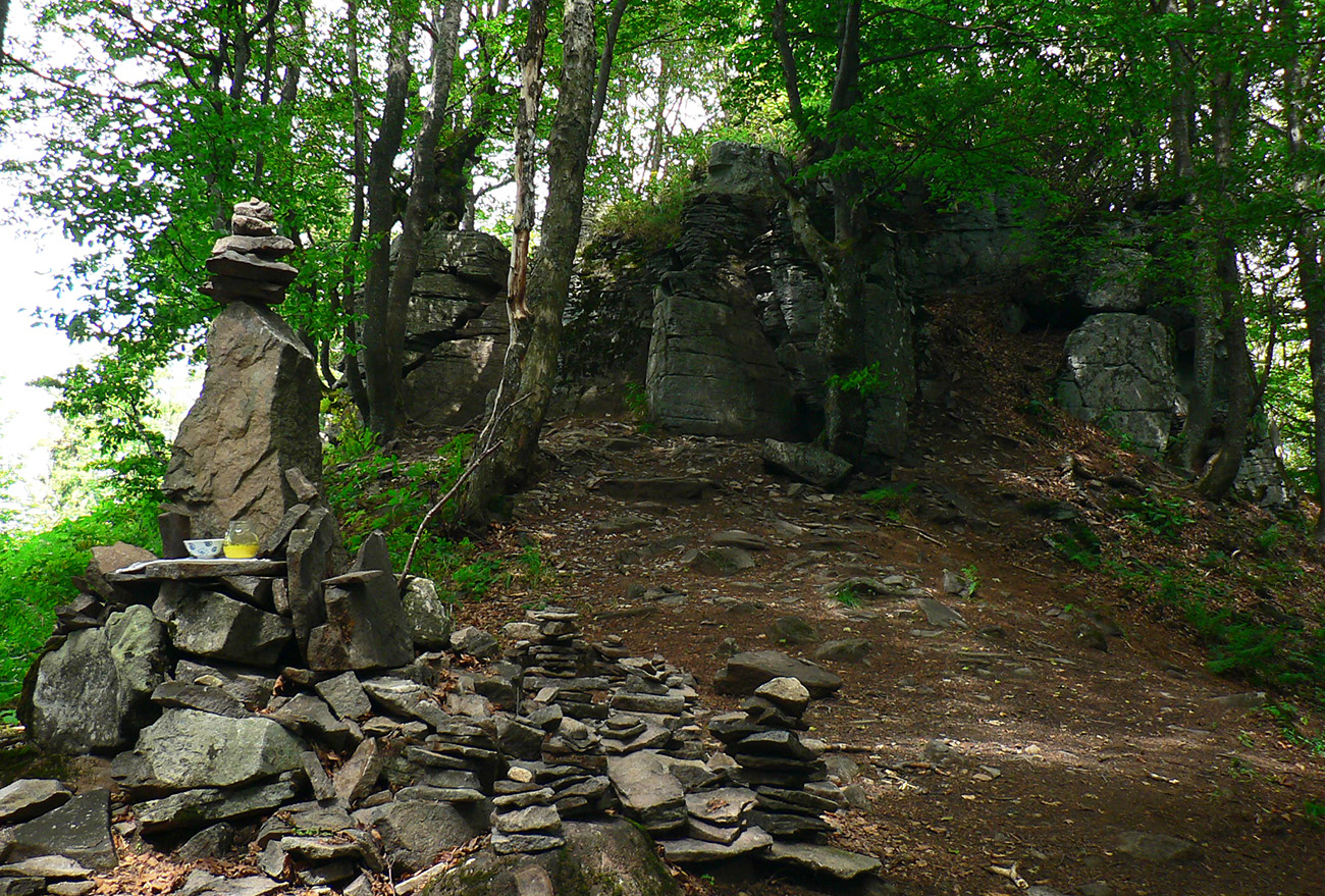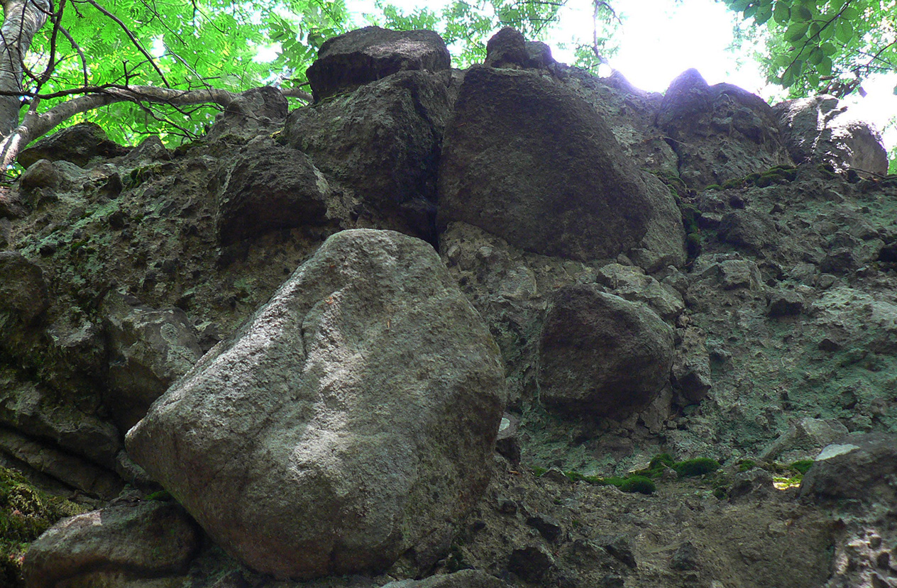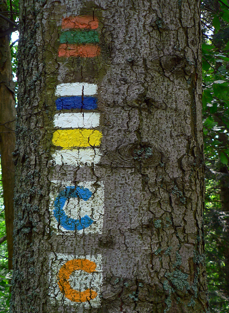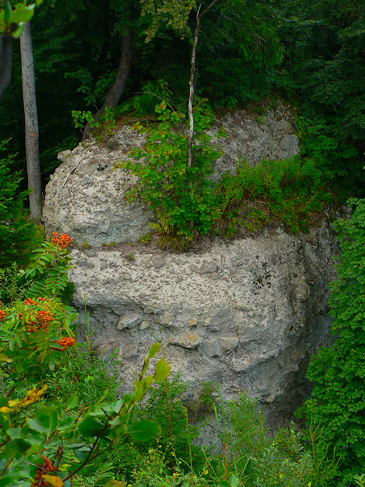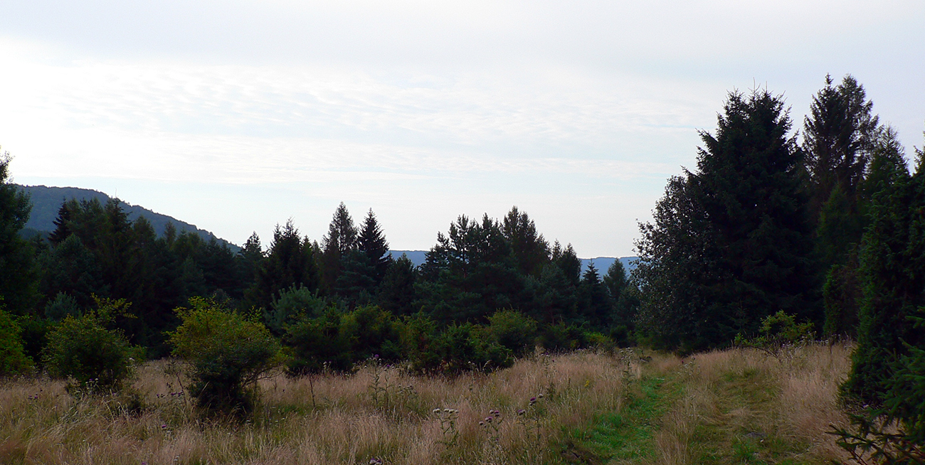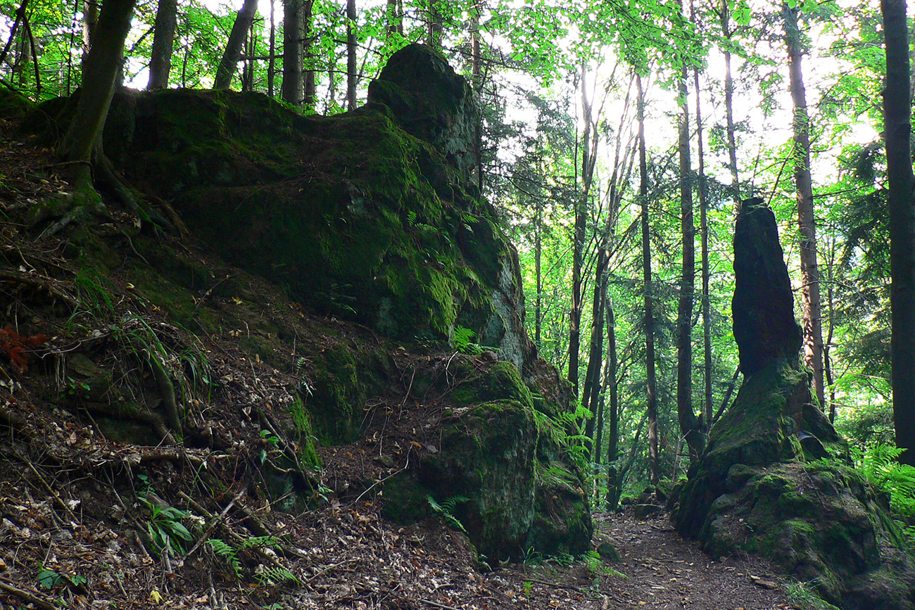 Vyššie v lese pod nohami je viac hliny, aj stôp po ťažbe dreva. Po výraznej odbočke doprava do kopca je to najviac rozryté a až hore na hrebienok je chodník nezreteľný – odbočuje nenápadne z tej zvážnice doľava, treba sa dobre po značkách na stromoch pozerať (to je tá prvá výnimka). Potom sa ale Kremnické vrchy odmenia po svojom – typicky peknou, lesnou hrebeňovkou a krásnymi bralkami okolo chodníka.