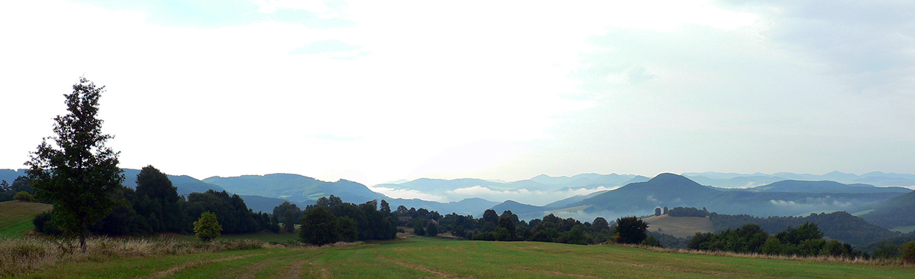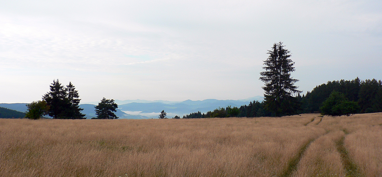 V Nevoľnom potom samozrejme paráda, na stĺpy a ploty je kam značky maľovať. Ale už odbočka z asfaltu za cintorínom zase neoznačená a na lúkach som sa stratil definitívne, aj keď Jastrabská skala v diaľke svieti statočne. Ale pekná krajina, ďaleké výhľady... No nepomotaj sa tam do sýtosti!