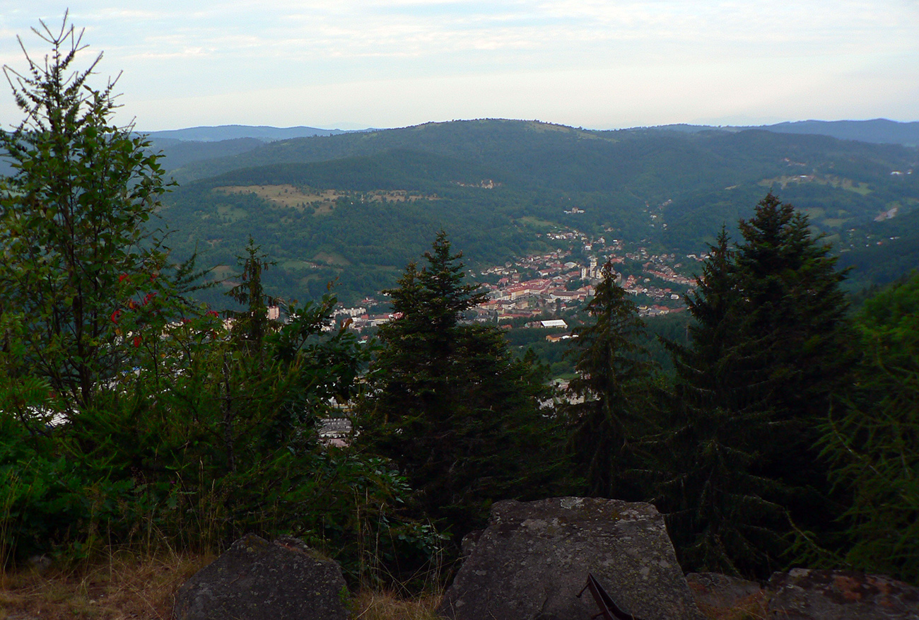 Zamračené dusno a popoludní búrky, nad južným Poľskom tlaková níž – toľko predpoveď na augustový víkend, treba sa hlboko zamyslieť. Na sever nie, tam to zleje skôr, do vysokých hôr dupľom nie. Na juh? Uvariť sa? Chce to niečo medzi: Kremnické vrchy sú výborný kompromis, v ich lesoch aj chládok bude. Takže prvý vlak ma do Kremnice priváža pred siedmou, prvý odchádza po tretej – mám dosť času improvizovať. Plán znie: okruh cez chatu Hostinec. Ale okľukou, aby nuda nebola. Čiže najskôr hore na Kremnický štít, potom využiť miestne značky a cez Nevoľné prejsť na Jastrabskú skalu. Nejakými skratkami cez lúky sa premotať do Ihráča, kuknúť na kamenné more a odtiaľ zelená smerom na Hostinec – na mape vyzerá dobre. No a po modrej dole do Kremnice, ešte som tade nešiel, tak je výber jasný. Trochu inak to nakoniec vyšlo, o tom je tá improvizácia. Tu je to na mape (https://mapy.hiking.sk), ale o tom neskôr: