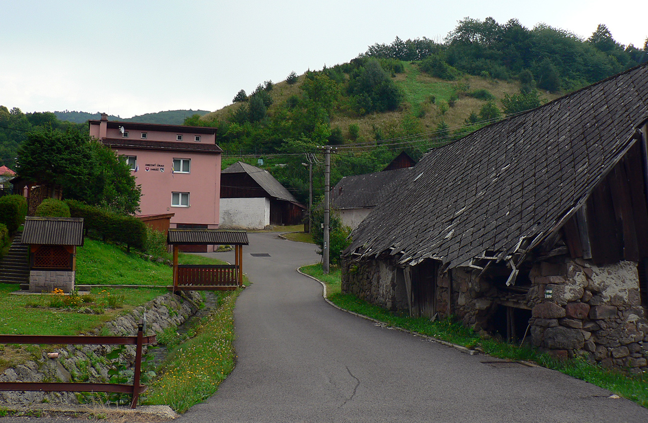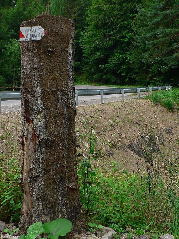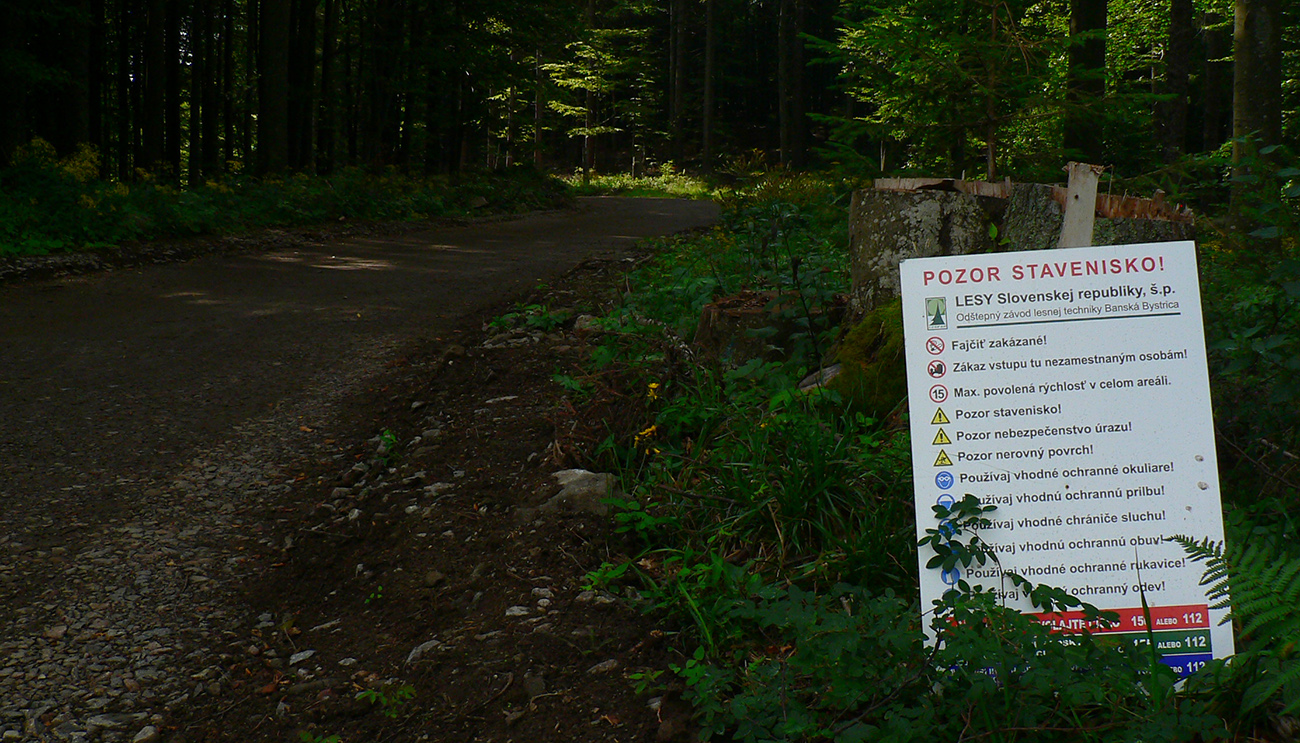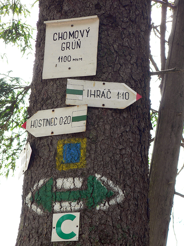 Len to netrvá dlho a východ z lesa na Chomov grúň je návrat do reality – nová, turisticky nechutná eurozvážnica. A just po nej značka velí obísť kopec Labušeň, smerom doprava. Ale pohľad dopredu a aj do mapy hovorí, že kopec sa dá obísť aj z druhej strany, smerom doľava! A funguje to a je to super, odporúčam. Koniec tejto druhej výnimky je na konci eurozvážnice, potom až k Hostincu už klasika po lesnej ceste.