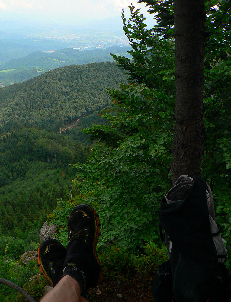 No, to by bolo. Ale do Kremnice slabé dve hodky a času som mal dvojnásobne. Tak som to otočil cez dobre známe Tri kríže, Velestúr a Zlatú studňu, aby som si pod ňou našiel peknú, z chodníka dostupnú, ale skrytú vyhliadku – skontrolovať, čo nové na bystrickej strane. Až do vlastného kancľa som dovidel, kam už som pár mesiacov ani nepáchol, hehehe... A keď stačilo posedávania a obedovania, hybaj nazad na Hostinec, už najkratšou trasou. Viac v galérii, čo je hore nové. Len ten strmák nazad na Zlatú studňu sa na mňa nejako moc vyškieral, po tom obede...