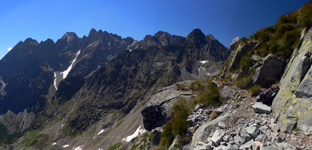 Cesta nazad je taká istá, len kopce pred očami iné: po hrebeni sa ide v ústrety Kolovému štítu, dole Červenou dolinou v ústrety skupine Kežmarák/Lomničák/Pyšný štít. Rozhľady také, že problém je nezakopnúť.