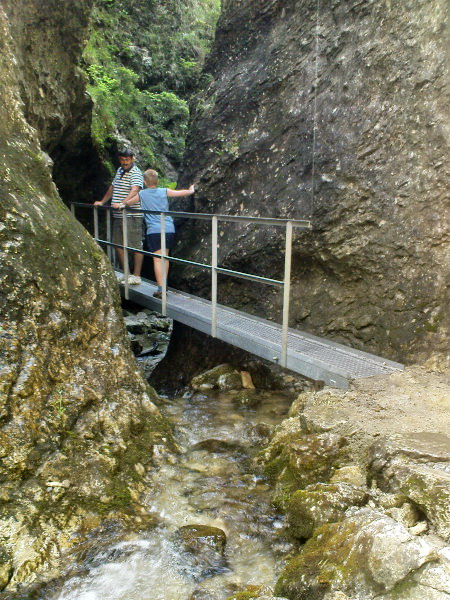 Mostík, lesná cesta, zrazu skalky. Celá dolina sa zrazu pritisne tesne na chodník, voda si vymyla svoj chodník, ten turistický vybetónovali dobré duše. Aj mostíky a ich upevnenia sem neprišli len tak, ale na chrbte človeka. Kaskády, meandre, vodopádiky, a rebríky ponad ne. Zaujímavé a nenáročné, deti vítané. Ale fakt treba prísť skôr, inak rátajte so zdržaním na mostíkoch a rebríkoch, sú to jednosmerky.V roku 2009 boli mostíky a rebríky vymenené.