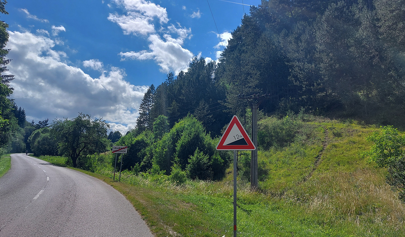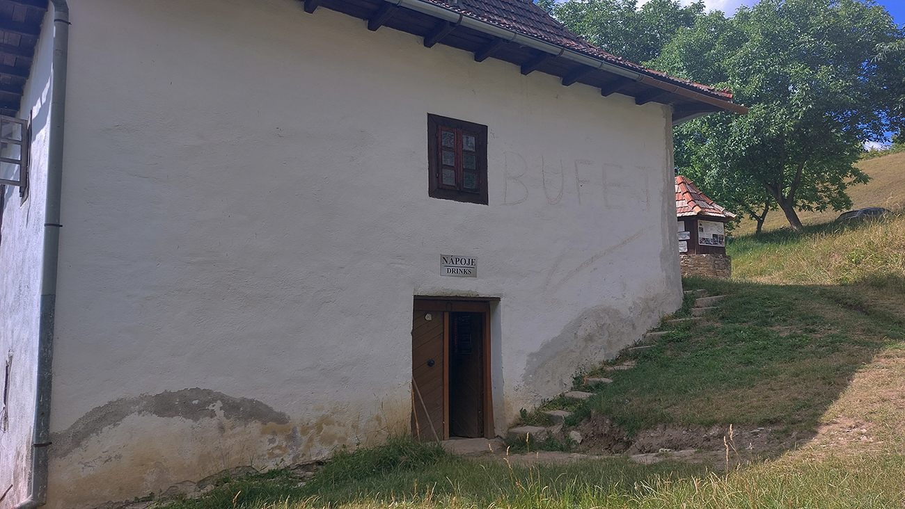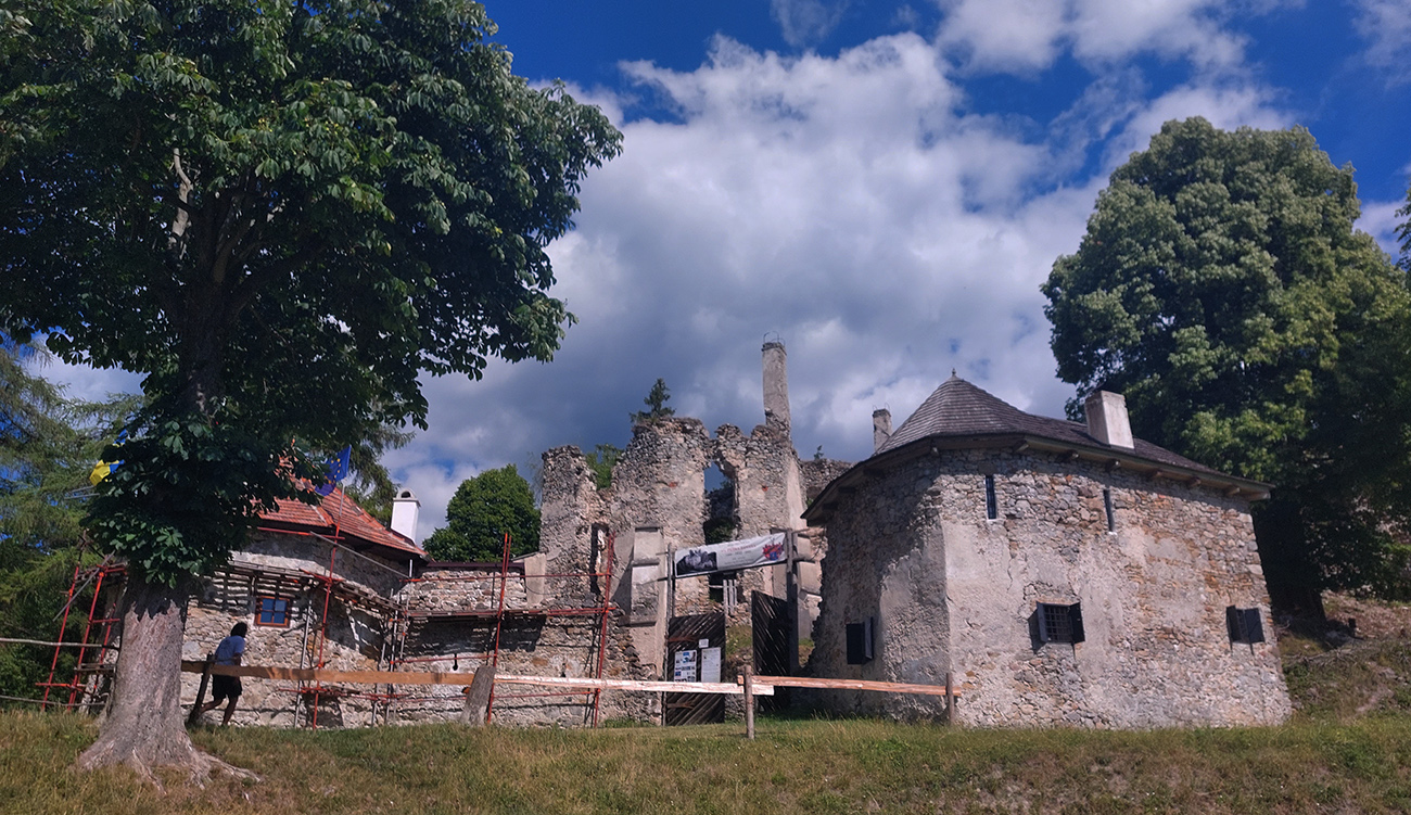 Po posilnení davaj hore na hrad. Neznačeným chodníkom síce, ale dobre ho vidieť priamo z križovatky pod krčmou, ako sa poza jediný dom na ľavom brehu potoka štverá cez strmý, trávnatý svah do lesa. Tam sa jeho sklon zmierni a po pár minútach sa vynorí priamo pod Sklabinským hradom. Pri hradnom bufete, keby niečo :-)