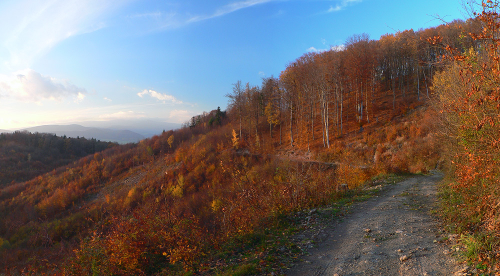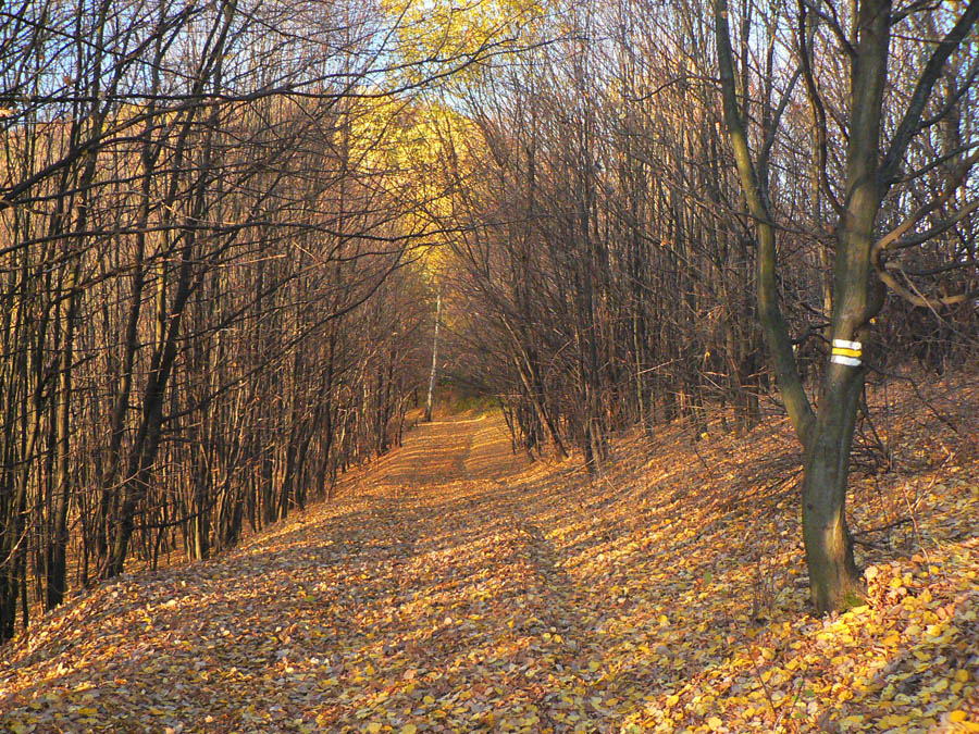 Štiavnické vrchy: tam sa dá motať po prírode, pamiatkach a cestách do zblbnutia. Krajina, ktorú vytvorila praveká sopečná a stredoveko-novoveká banská činnosť, je neskutočne pestrá. Keď sa k tomu prirátajú ostré a tiež pestré farby neskorého, novembrového babieho leta, netreba viac slov, treba ísť! Je jedno či pešo, či na bajku, väčšina tunajších trás je vhodná pre oba spôsoby pohybu. A v zime na bežky samozrejme tiež. Preto som tentokrát vyberal podľa množstva lúk, aby som sa len po lese nemlátil. Požiadavky pri náhľade do mapy spĺňal okruh okolo doliny, ktorá je jednou z hlavných prístupových trás do Štiavnice od Hrona – z Bzenice cez Vyhne a Banky.