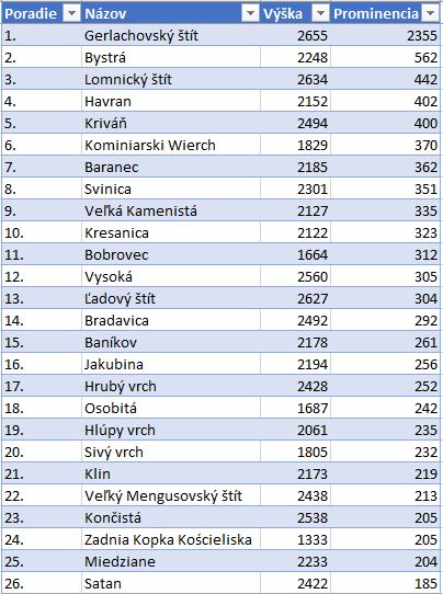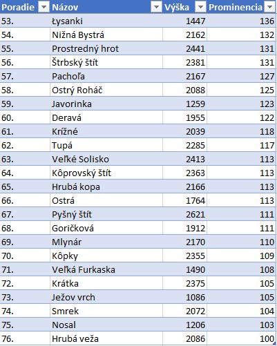 zoznam 76 tatranských štítov podľa prominencieRelatívna výška vrcholu - prominencia