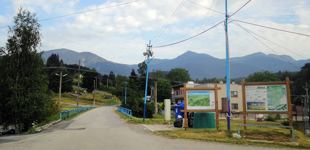 Vtip preto, lebo nasleduje zjazd po nádherne širokých, nových a betónom dobre vystužených serpentínach, na konci ktorých čaká znovu poriadna dávka budovateľského folklóru v podobe dopravných značiek a poučných tabúľ. Už pred pár rokmi som sa pri pohľade z protiľahlého veľkofatranského Kľaku čudoval, čo to pod Kriváňom tak bielo svieti. Po poslednej serpentíne už valím dole popri potoku už bez zákrut a na výraznej križovatke točím doprava - popri eurotabuli, informujúcej o zvyšovaní konkurencieschopnosti a bla bla bla. Dalo by sa aj nižšie odbočiť, ale vyšiel by som z národného parku, to nie!