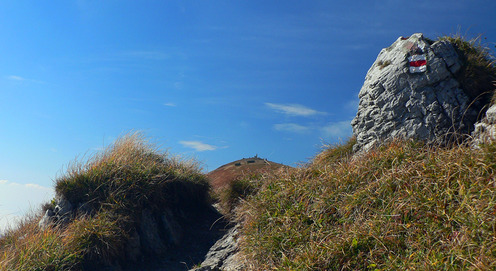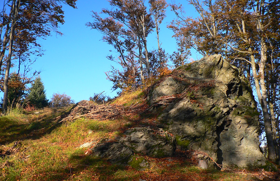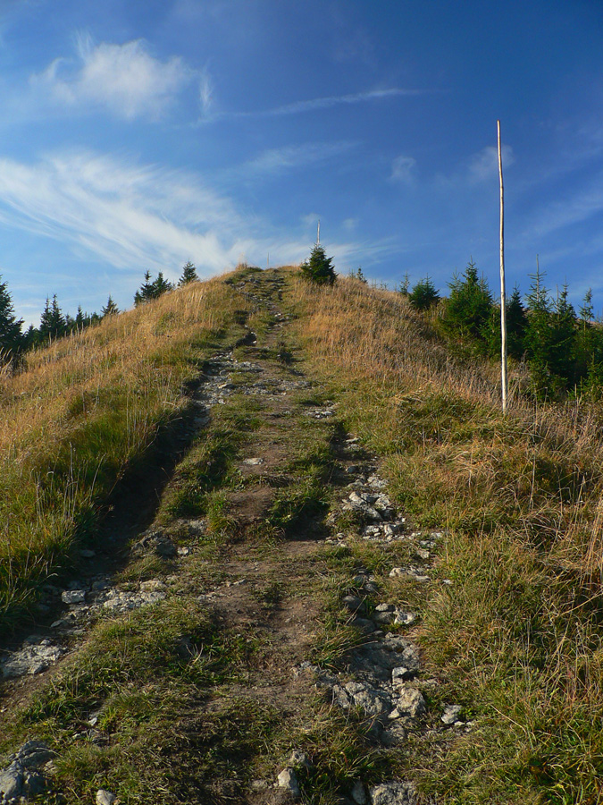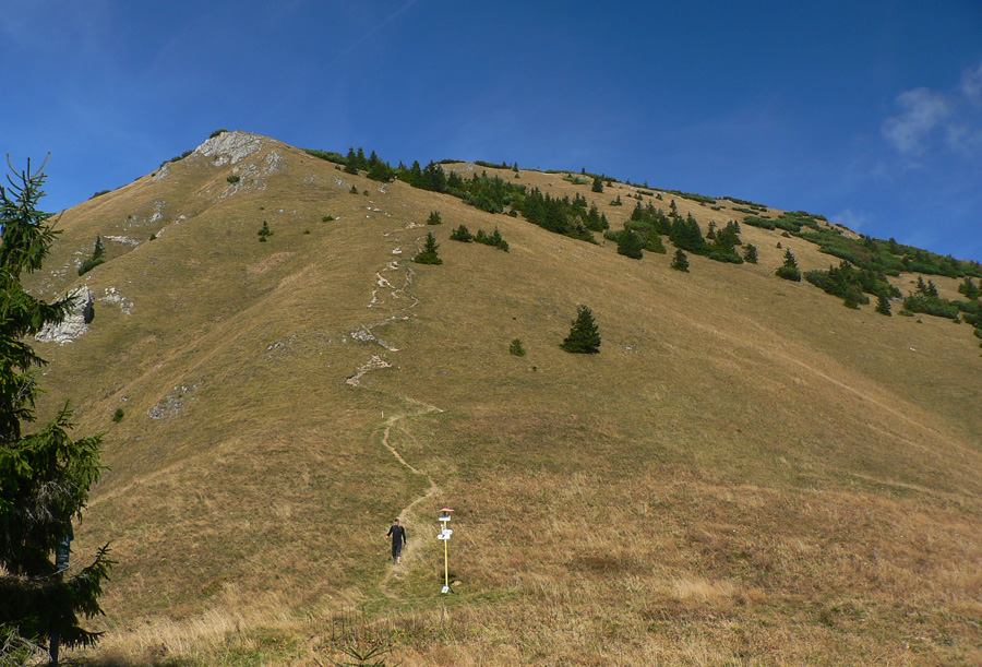 A zas horizont a za ním posledný hôľny úsek: Stratenec, Biele skaly, Suchý. Kosovka, lezecké vložky na spestrenie, nová vlajka veselo plápolá, pod ňou hasím hlad aj smäd. 10 minút stačí, rozchodiť tuhé nohy a davaj do lesa. Rozprávkového č.2.