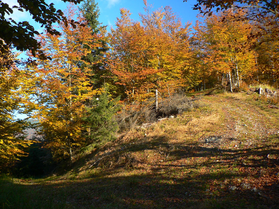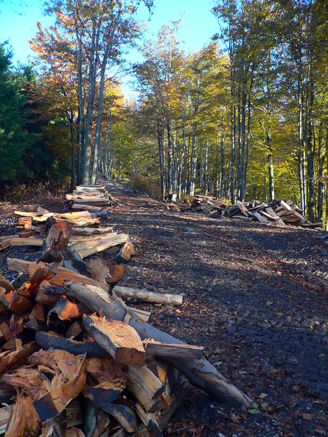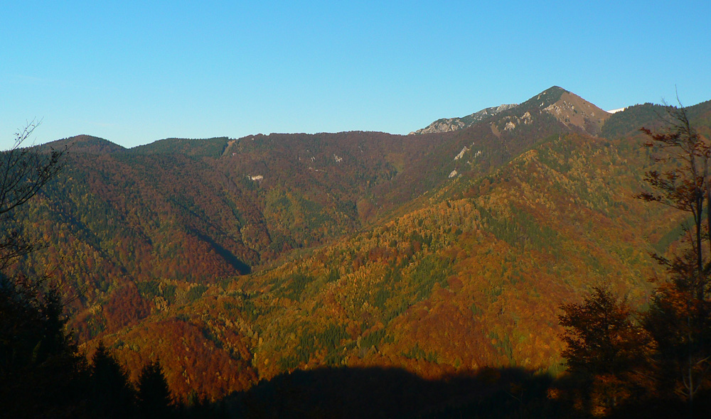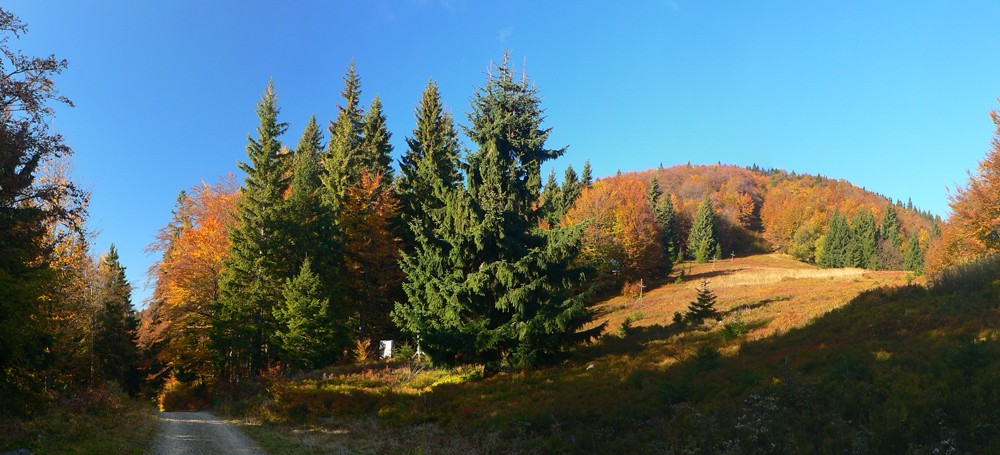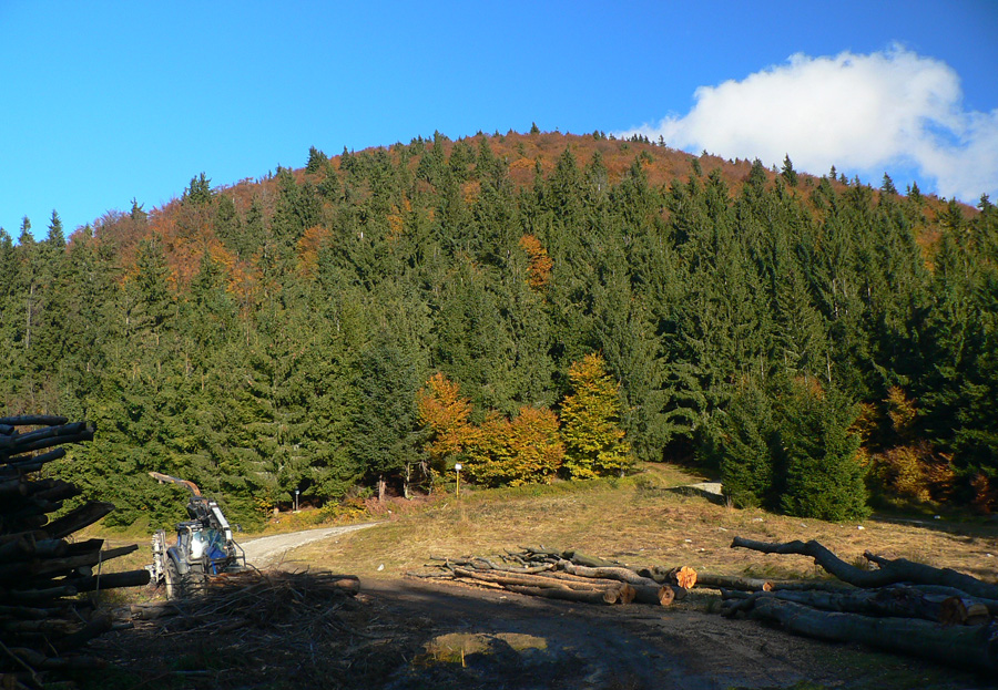 Studnička pod Magurou do žľabu čurká, dopĺňam druhý raz. O chatu sa ani neotriem, len obzriem, či niekto známy...? Nik, tak zvážnice smer Panošiná. Bajkeri, potom už len stopy po traktoroch a Malofatranskej stovke. Aj klieštiky a kontrola na Panošinej ostali od júla. Dávam si sľub: prídem to upratať. Z rúbaní nádherné pohľady na vyfarbené lesy pod Suchým.