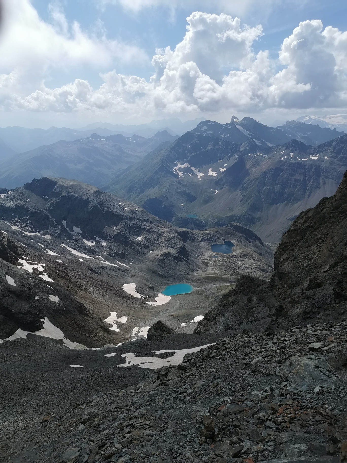 Parking na Sfazú, už platený ale nevadí, nestojí to viac ako Tatry, Euro na hodinu. Vyrážam na bajku s batohom na chrbte. Najprv celá Val di Campo, hore až na passo Viola. Poznám to tu už naspamäť, krátke úseky tlačím. Zjazd do talianskej Val Violy, včas odbočiť doprava, a potom ďalší výšľap po šotoline na najľahšom prevode až do Passo Verva (2300 m). Najskôr sa ale zastavujem na salaši Alp Verva. Rozmýšľam, že bajk zamknem tu, ale po dokúpení tekutín sa rozhodujem pokračovať bajkom až do sedla. Odtiaľ kus tlačím, potom bajk skryjem medzi skaly a zamknem o starý plot.