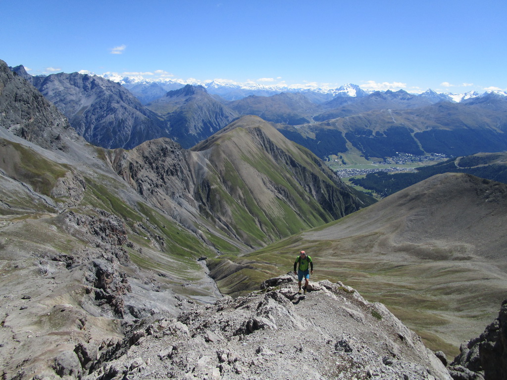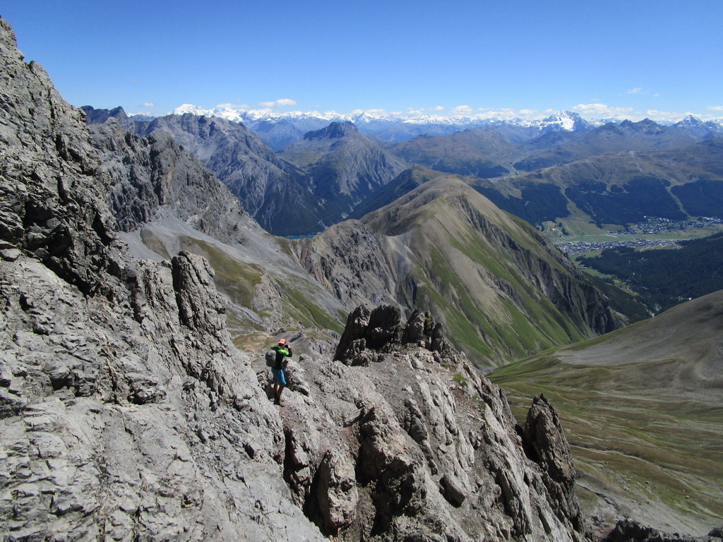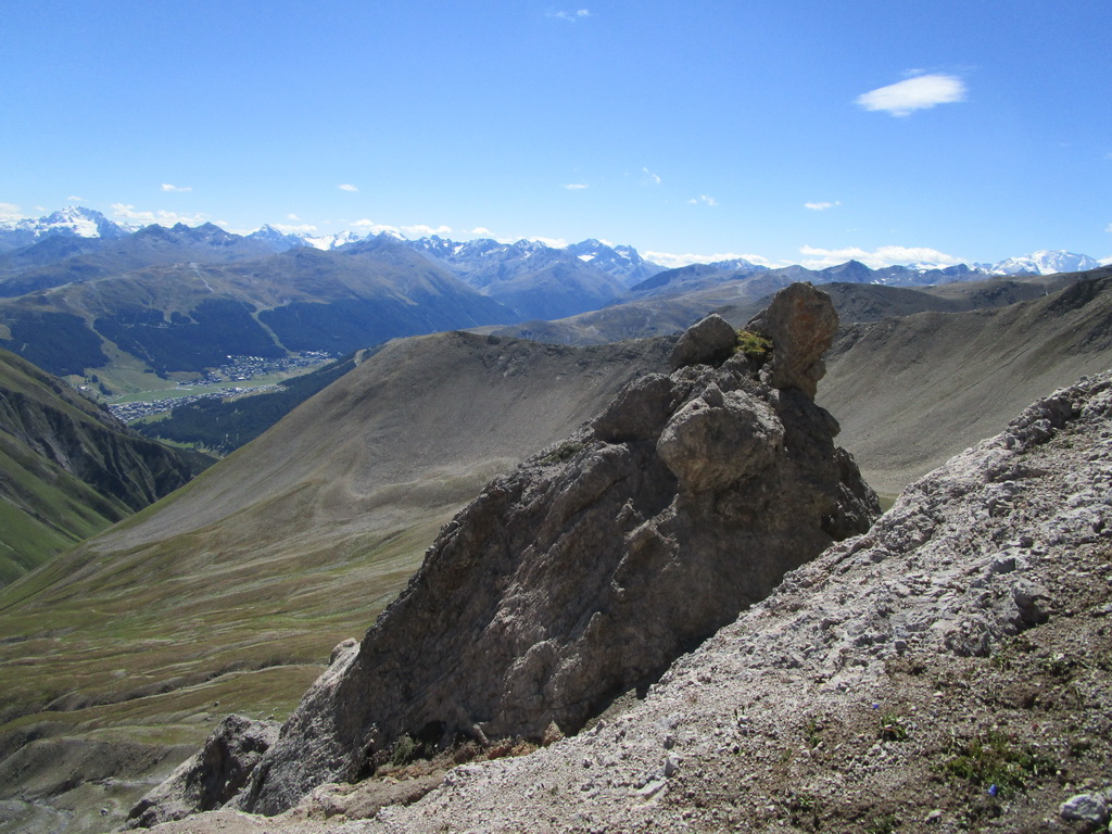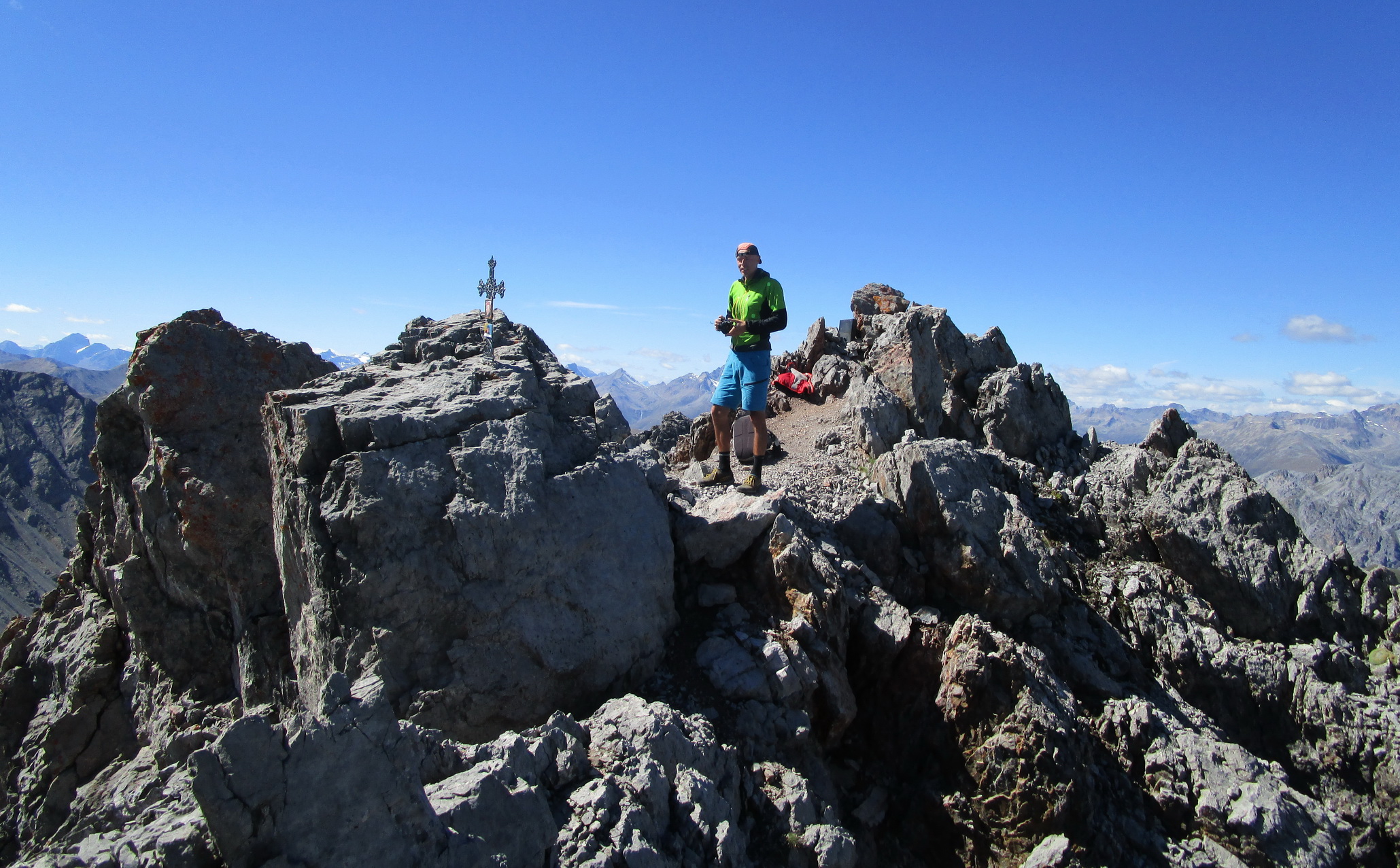 Vrchol Monte Sagliente 3048m. je parádny cieľ nad Livignom. Členitý, dobrodružný a krásny výstup značený mužíkmi. Vedieť sa s istotou pohybovať v teréne okolo 2+ je nevyhnutné. Na vrchole nás čaká krížik aj s vrcholovou knižkou. Zápisov v nej nie je prehnane veľa... Ako odmenu dostávame výhľady nielen na náš predošlý kopec Corna di Cavalli ale aj na kopce od Berninských Álp až po tie Ortlerské... Môže byť...