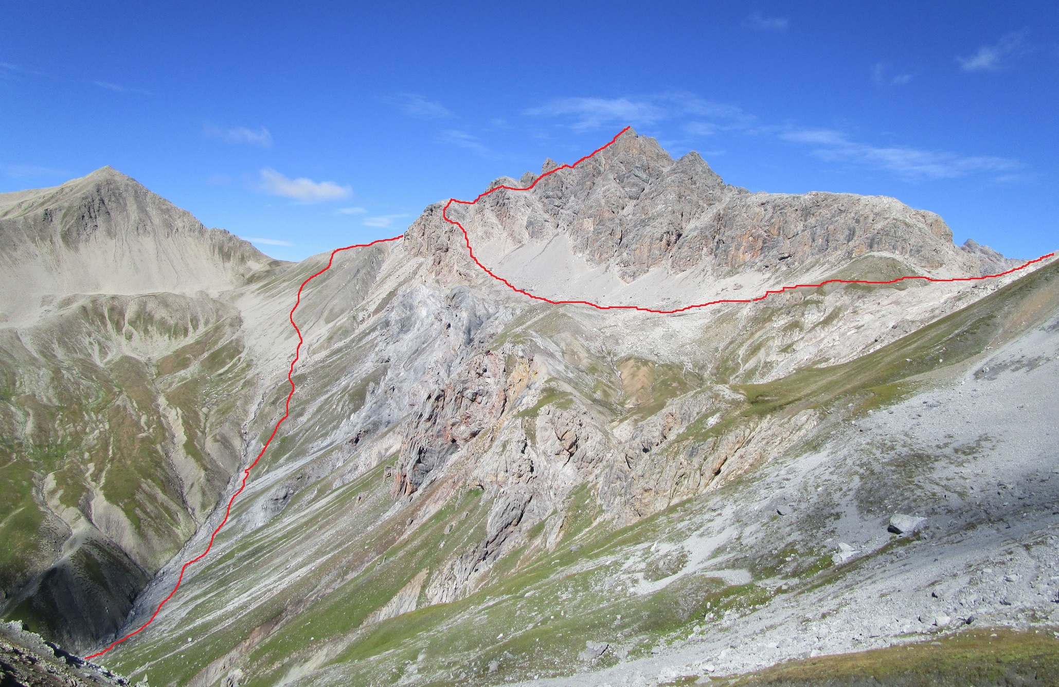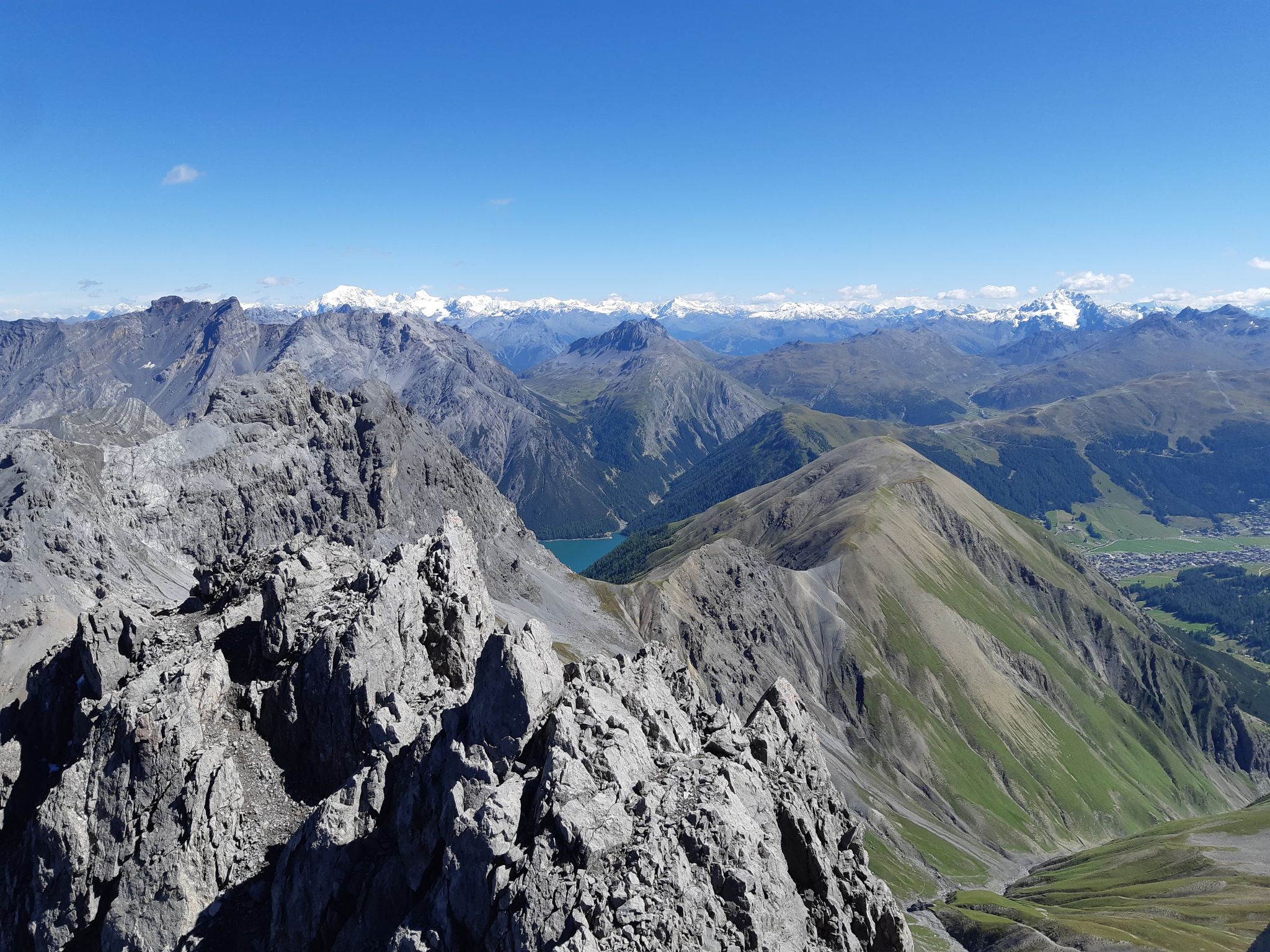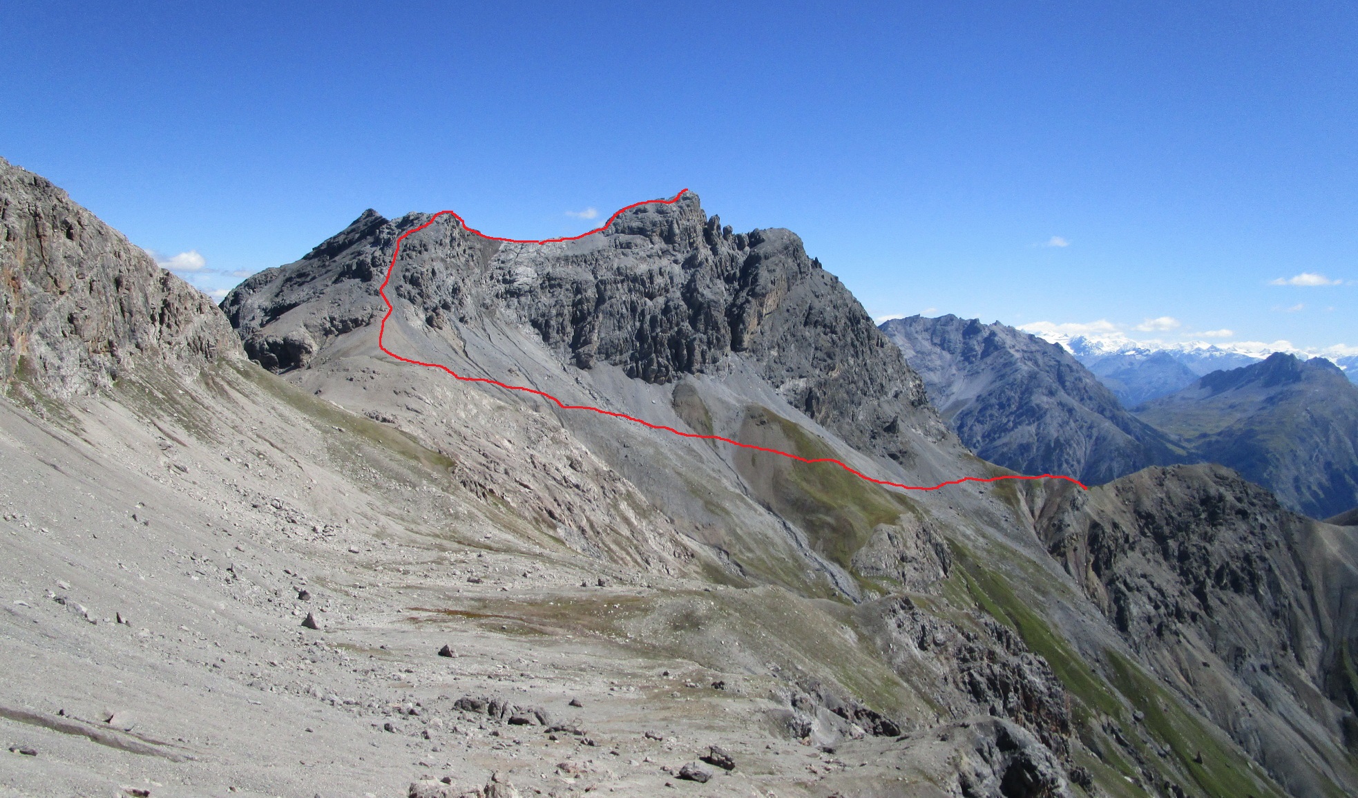 Vrchol Monte Sagliente 3048m. je parádny cieľ nad Livignom. Členitý, dobrodružný a krásny výstup značený mužíkmi. Vedieť sa s istotou pohybovať v teréne okolo 2+ je nevyhnutné. Na vrchole nás čaká krížik aj s vrcholovou knižkou. Zápisov v nej nie je prehnane veľa... Ako odmenu dostávame výhľady nielen na náš predošlý kopec Corna di Cavalli ale aj na kopce od Berninských Álp až po tie Ortlerské... Môže byť...