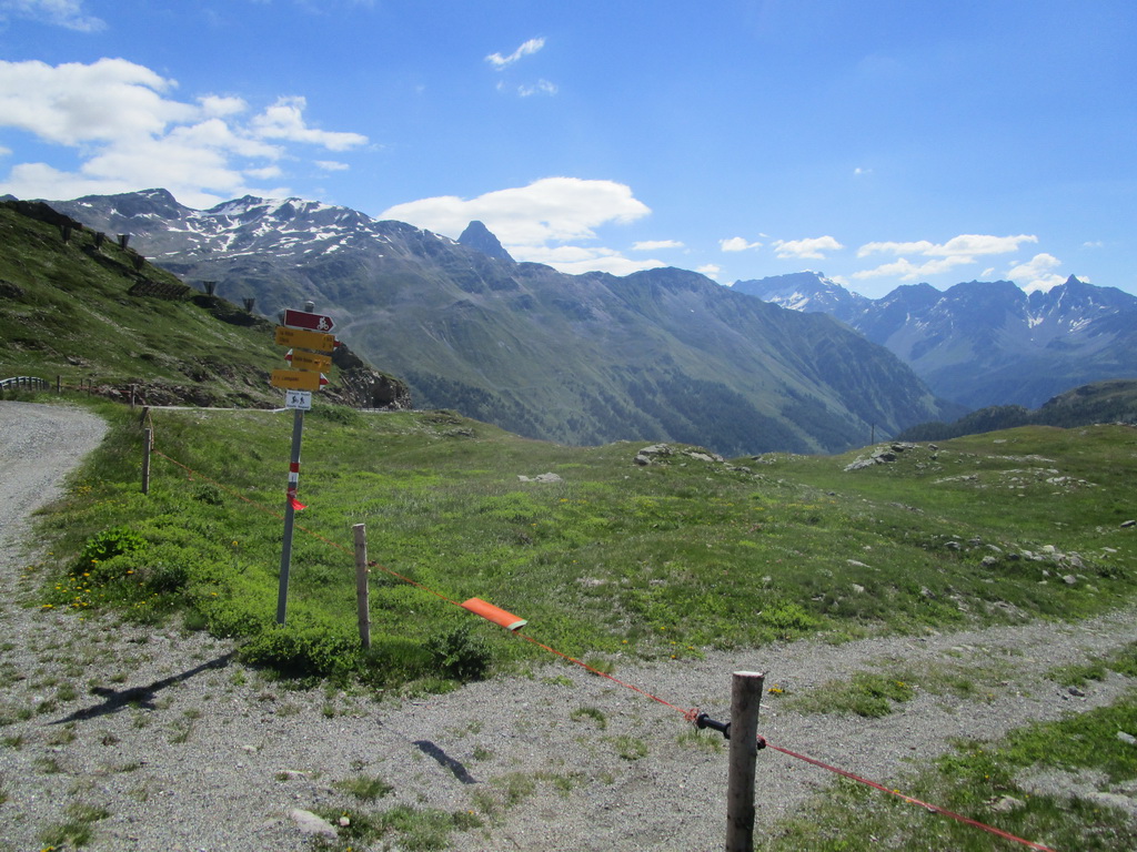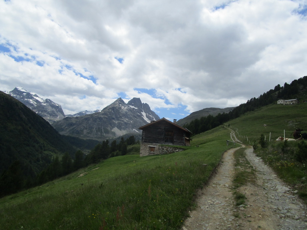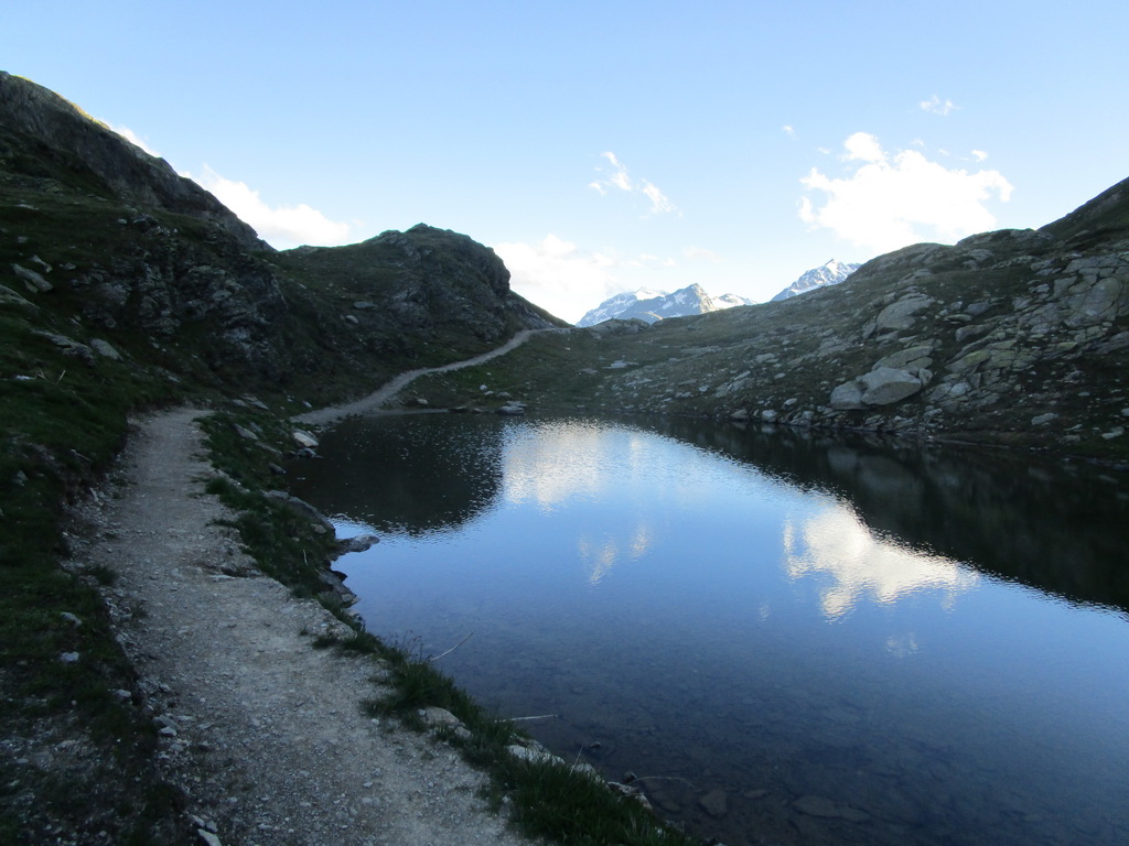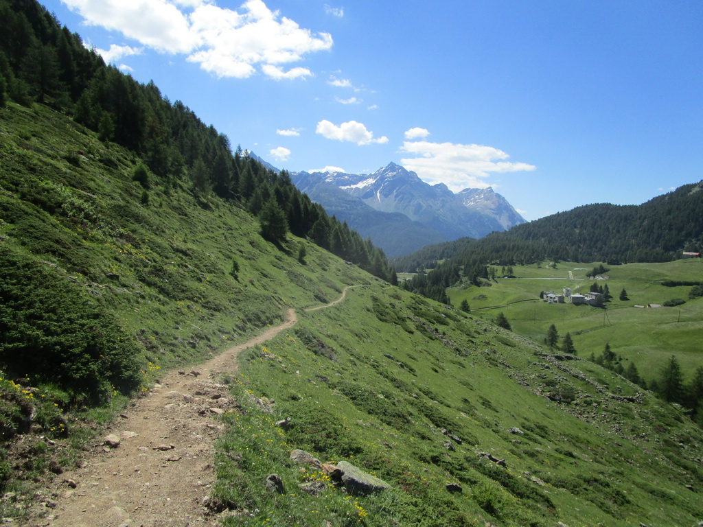 Ráno som zaparkoval pod passom Bernina na bezplatnom parkovisku a vyrážam. Z passo Bernina kam som vyšiel po asfaltke odbočujem doprava na označenú biketrasu. Málokedy začínam túru hneď parádnym zjazdom. Pri križovaní hlavnej cesty treba spozornieť, môžu vzniknúť orientačné problémy. Kto ale kukne aj do mapy bude v pohode. Singltrail je totožný s červeno značeným turistickým chodníkom.