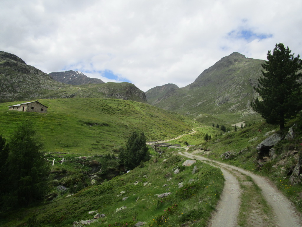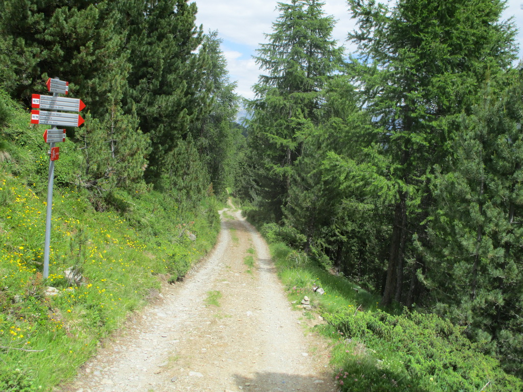 Druhý krát križujem hlavnú cestu pri moste pod Forcolou di Livigno. Pokračujem parádnym singlom až do Sfazú. V závere už je lesná cesta. Na stúpanie do Val di Campo sa napojím trošku vyššie nad hlavnou cestou. Ušetril som pár výškových metrov.