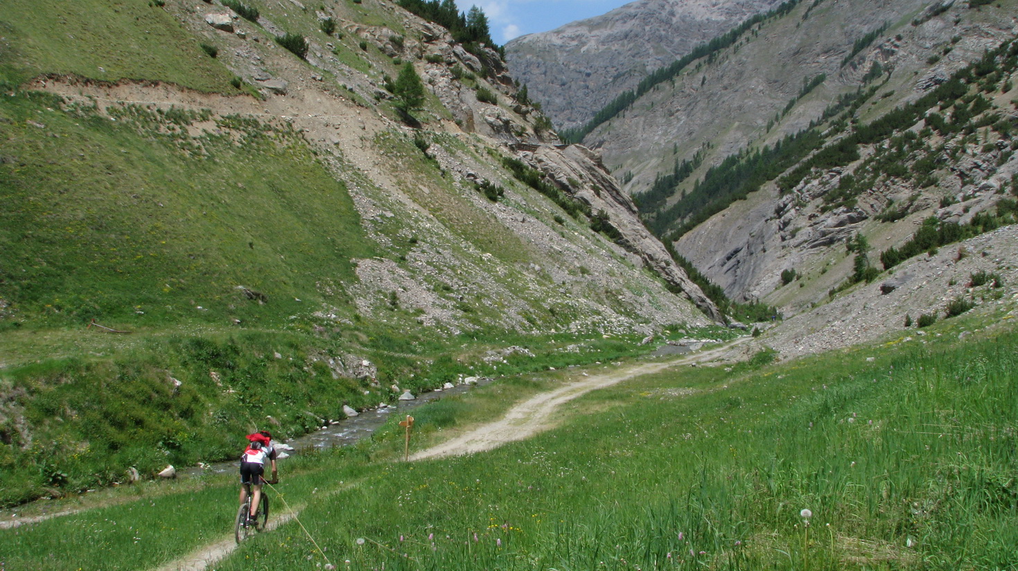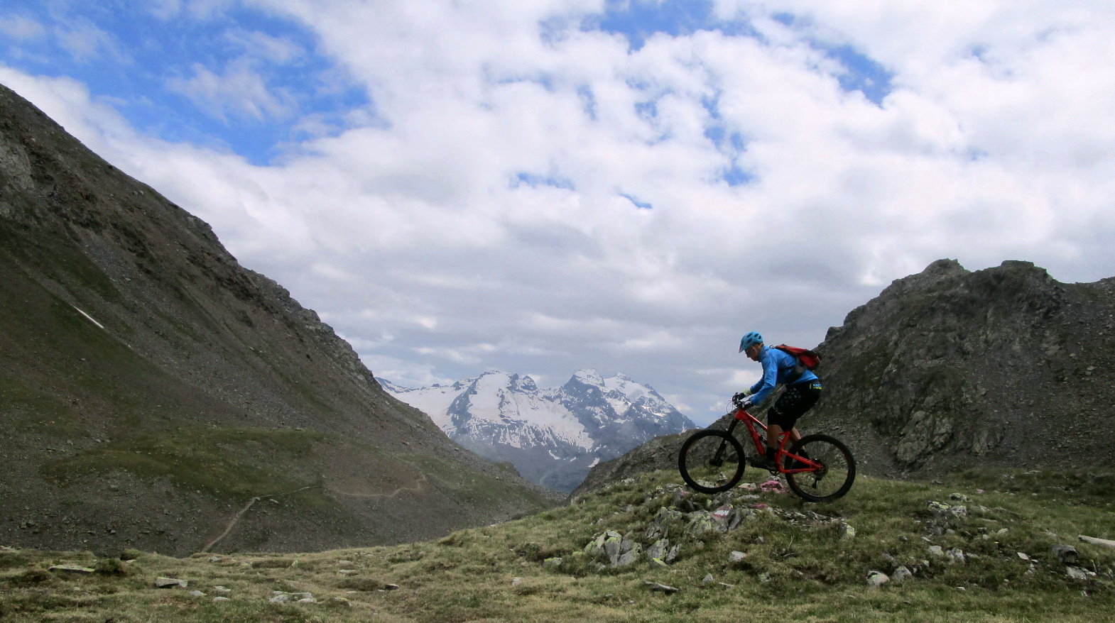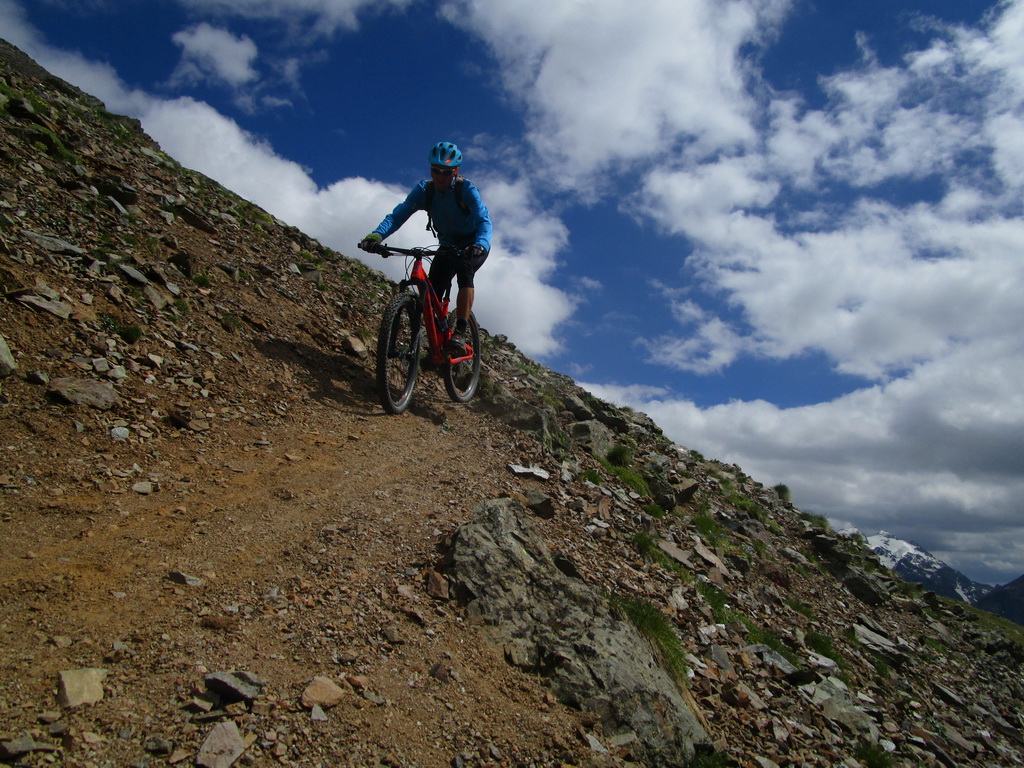 Kto by mal veľa síl a času: Dolinou Val Minor vedie ťažký a dlhý zjazd až ku stanici lanovky Lagalb. Ja však idem na passo Bernina. Občas trošku potlačím, po prehupnutí sa cez kopček následuje zjazd chodníčkom. Krásny singl, ako v podstate väčšina dnešného dňa.