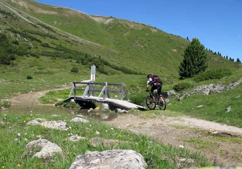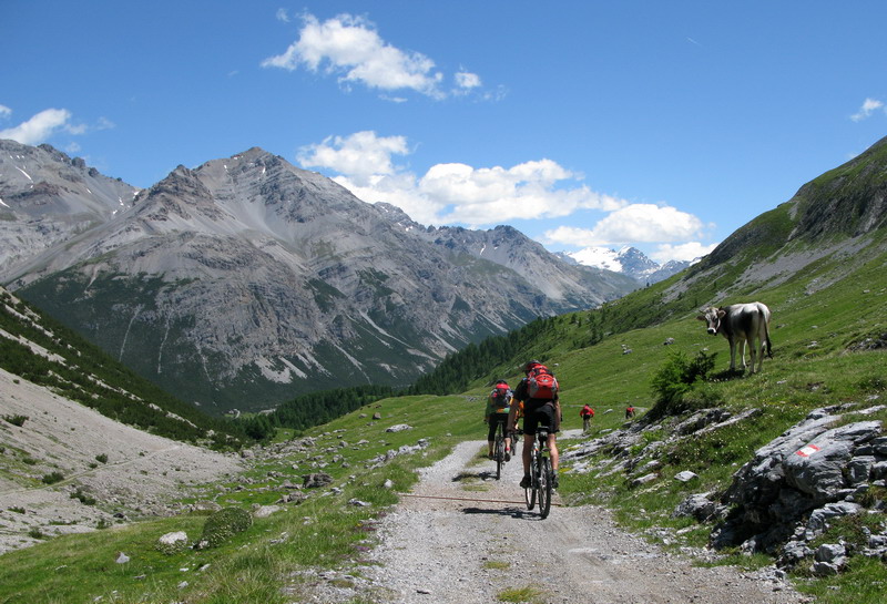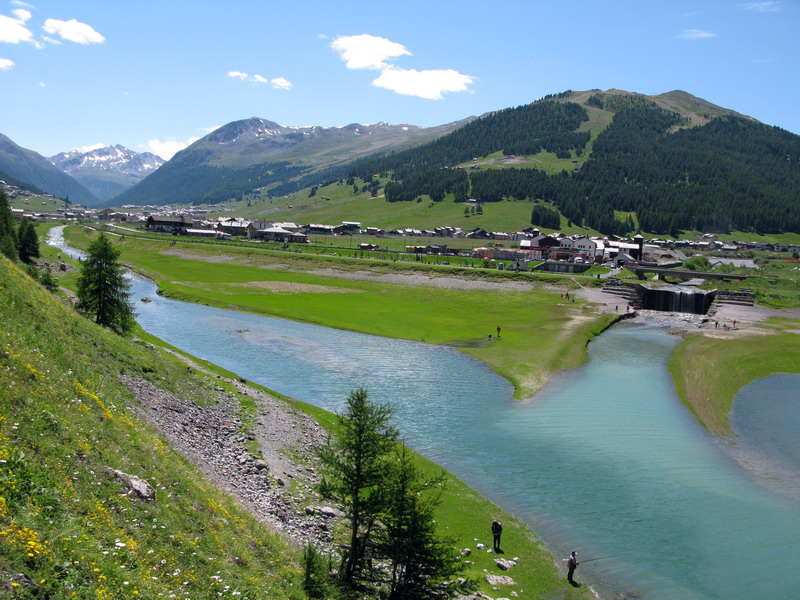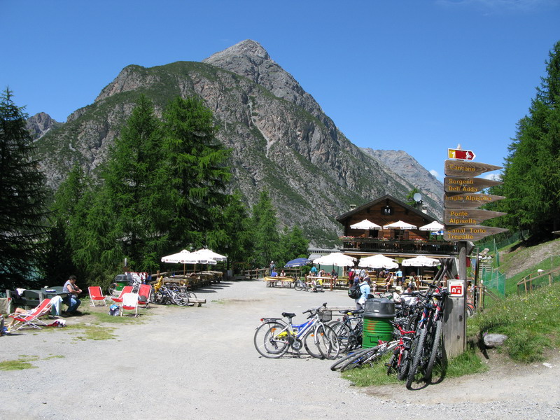 Stúpam na najľahšom prevode peknými serpentínami do sedla Alpisella. Tu stretávam prvých bikerov a nie je ich zrovna málo. Zvyšuje sa aj hustota peších turistov a ja sa blížim ku Livignu (1816m.) Po zjazde do doliny prevažne štrkovou cestou sa dostanem ku jazeru. Tu už je takmer "hlava na hlave" a ja sa po pár kilometroch po asfaltovom chodníku vynorím z lesa na okraji Livigna. Vychutnávajúc výhľady mi zároveň naplno pracuje "plánovač" v mojej hlave. Sú dve hodiny popoludní a ja chcem využiť tento deň naplno.