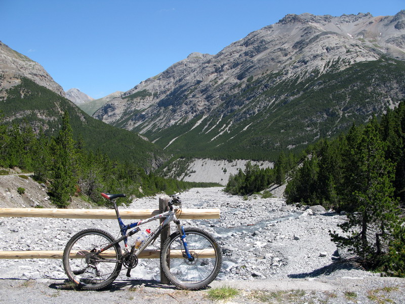 A takto, plnému zvedavosti a po dlhšom plánovaní sa mi vyskytla šanca sa tu pozrieť. Passo Stelvio bolo zavreté, pre pád kamennej lavíny a tak som zvolil variantu cez Švajčiarsko. Vyrazil som ráno zo Suldenu a rozhodol sa nechať auto na Ofenpasse. Odtiaľto už vyrážam na bicykli, veď prečo by som sa trepal autom cez platený tunel, keď môžem ísť terénom na biku.