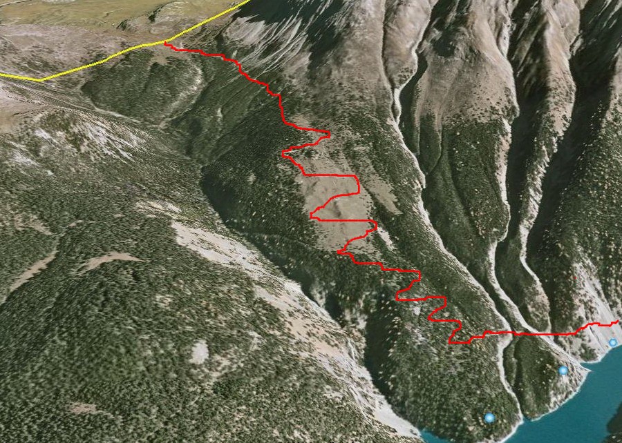 Pokračujem ďalej borovicovým lesom až ku ďalšej priehrade: Lago di san Giacomo. Tadiaľto som prechádzal minulú jeseň pri prvom kontakte s týmito končinami. Po štrkovej ceste vedúcej popri brehu sa dostanem za chvíľu k ústiu doliny Val Alpisella. Tu sa zároveň napájam na trasu celoročne značeného MTB maratónu La pedaleda.