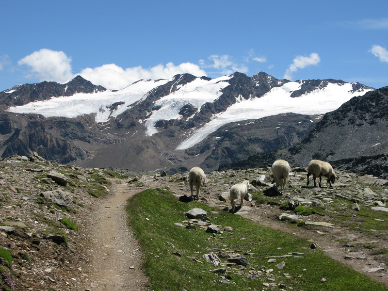 Vyrazil som ráno zo Suldenu a keďže som nemal chuť sa prevážať lanovkou, vydal som sa trápiť hore štrkovou cestou (tzv. Schaubachweg). Toto veľmi strmé stúpanie vedie serpentínami, čiastočne po zjazdovke ku hornej stanici lanovky. Na prekonanie tohto úseku tú lanovku vrele odporúčam. Odvezú vám bez problémov aj bike, cena cca 10 euro.
